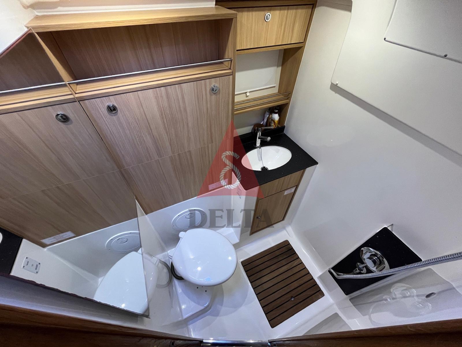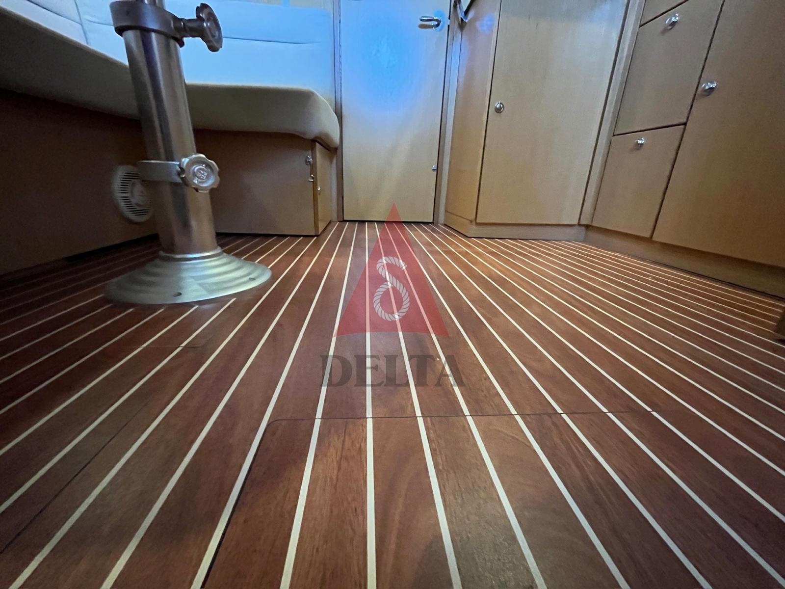 Alarme moteur, Ouverture du compartiment moteur électrique, Eau sous pression, 4 Batteries (2 motori + 2 servizi), Passavant en teck, Douche de cockpit (Calda/Fredda), Propulseur d'étrave (Side Power), Flaps électriques, Extincteur(s) fixe(s), Indicateurs de flaps, Lavabo dans le cockpit, Éclairage de courtoisie, Plateforme arrière, Pompe de cale automatique, Pompe de cale manuelle, Cockpit en teck, Prise de quai, Rollbar, Guindeau électrique, Echelle de bain, table de cockpit, Table pliante de salon, Corne.
