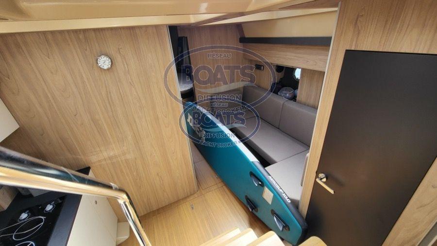 Bel espace cockpit, avec grand carré, évier et frigo extérieur,