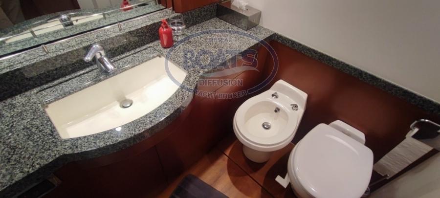 Ce superbe Princess V70 a bénéficié d’un soin attentif par son propriétaire. Il se distingue par un **refit complet du pont en teck et une sellerie intérieure et extérieure en cuir haut de gamme.