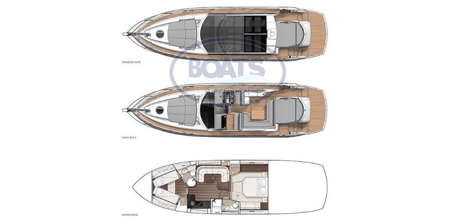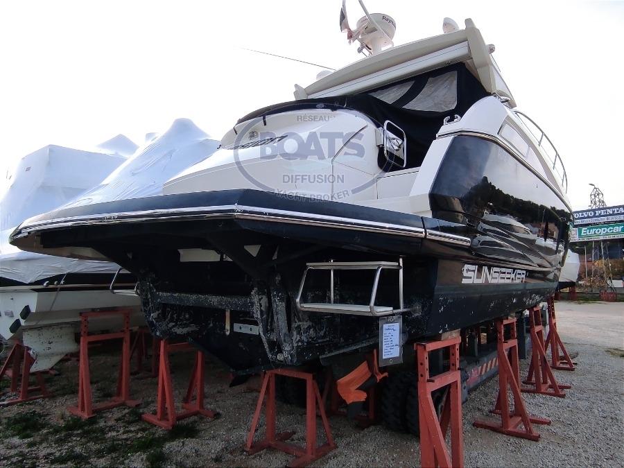 ce magnifique SUNSEEKER Portofino 48 est un croiseur rapide d'exception. Le chantier Sunseeker s’inscrit dans la recherche de l’excellence et de la perfection. les yachts du chantier Sunseeker sont solides, performants et marins. L’engagement du chantier est de créer des unités faites en combinant savoir-faire traditionnel et technologie moderne. Ce Portofino 48 de 2012 est dans état exceptionnel, entretenu parfaitement par son propriétaire. Toutes les révisions et entretiens sont suivi par des professionnels rigoureux. Propulsé par deux moteurs Penta DPS - IPS600 de 435 cv. Une vedette sportive grand luxe et grand confort, le Sunseeker Portofino 48 offre un superbe aménagement intérieur avec une suite principale à l'arrière sur toute la largeur du bateau, très lumineuse grâce à ses immenses baies vitrées. Des équipements de qualités: Grand bains de soleil, plage arrière hydraulique immergeable, grand salon de cockpit, hard-top électrique, électronique Raymarine, Sono Fusion mp3 Bluetooth, Purificateur d'eau /Plaque vitrocéramique 2 + dinette cockpit avec Evier et plancha, garage est volumineux pour accueillir une Williams-jet-tenders 325, et de nombreuses options détaillées dans l'inventaire.