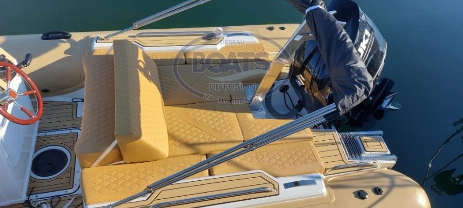 Modele DR 600 GT 2024 Vanguard tube Hypalon grands bains de soleil arrière bains de soleil avant mat de ski modele unique Bimini, nombreuses options GPS sondeur Radio Bluetooth Grands coffres contenant toute la sellerie. Prêt à naviguer équipement côtier 6 personnes. Motorisation à choisir Mercury Honda Suzuki. Bateau neuf 2 heures essai non immatriculé