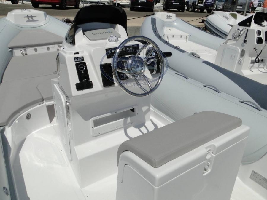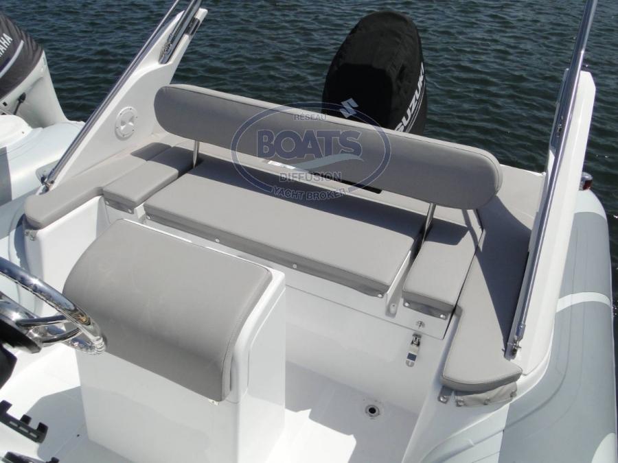 Magnifique semi rigide Master 630 Summer de 2023. Etat proche du neuf, tout juste 212 h pour un moteur HB SUZUKI 140cv parfaitement entretenu avec commande électrique. Direction hydraulique.