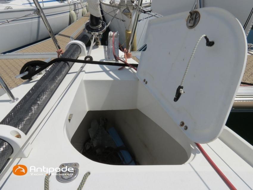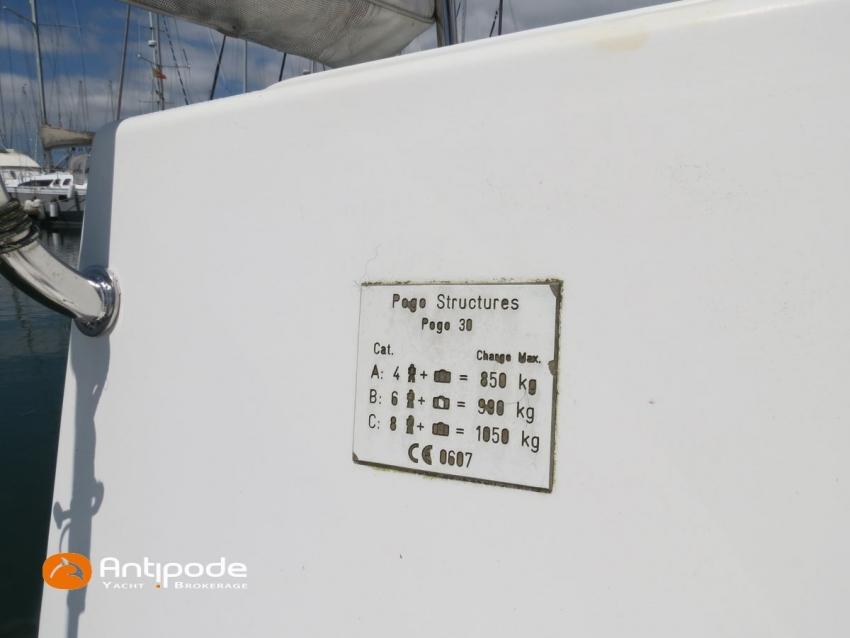 POGO 30, 2015, 1ère main, VOLVO D1 - 20F, 18 cv (518 h), Version Quille Fixe, Version d'aménagement intérieur 1 cabine avant, 1 cabine arrière, Bout-dehors rétractable pour spi asymétrique, Mât carbone laqué blanc , Lazy-bag de grand voile, Solent sur enrouleur - Incidence Hydranet 2015, Etai largable avec système de tension, Voile de brise pour étai largable, Gennaker sur emmagasineur, Gréement courant Dyneema, Pilote automatique in board - NKE Gyropilot 3 + Verin 2025, Télécommande à distance du pilote, Centrale de navigation - NKE, Transpondeur AIS (émetteur récepteur) - NKE, Informatique (PC + windows)+ Adrena, Unité réfrigérante 12 V ouverture par le dessus, Gazinière 2 feux + four, Prise de quai 220 V + chargeur de batteries, Réservoir rigide eaux noires, Panneau solaire, Visible Bretagne. Pour plus d'informations ou pour fixer un rendez-vous de visite, contact : François Mouchel 06 62 30 97 30 - francois@antipode-yachts.com