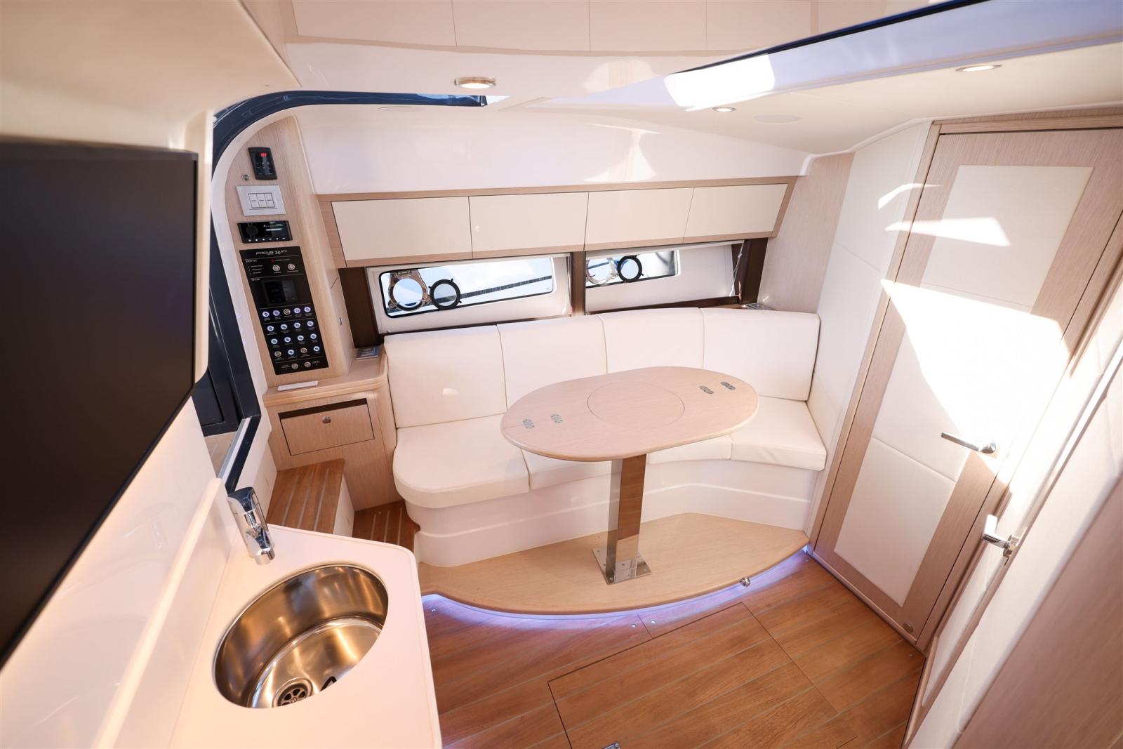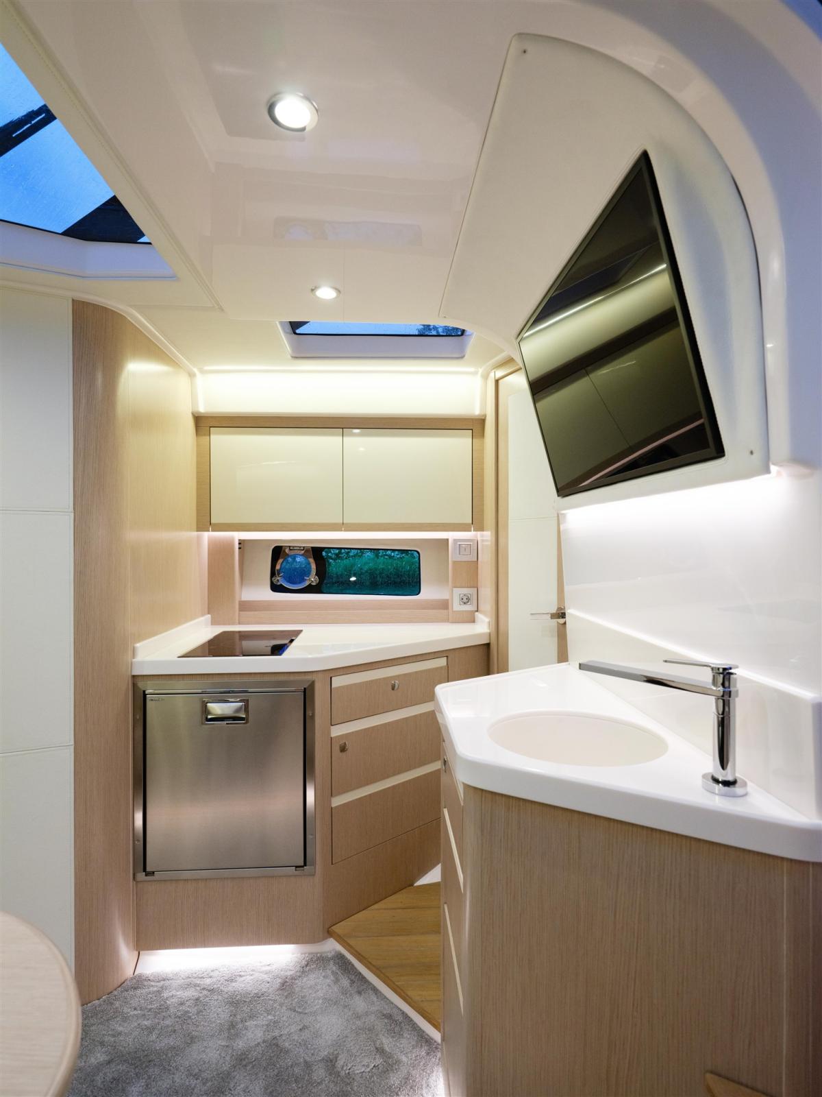 LA LIGNE FOCUS POWER 36 EXPRIME LE PLUS HAUT NIVEAU D’ESTHÉTIQUE MODERNE GRÂCE À UN TOIT RIGIDE OUVRABLE TOUT EN VERRE, ÉQUIPÉ DE GRANDES FENÊTRES LATÉRALES QUI METTENT EN VALEUR SES LIGNES ÉLÉGANTES. De plus, avec un grand nombre de normes, il comprend également un revêtement en teck du cockpit et du pont arrière. Le Focus Power 36 a été nominé pour le prix European Powerboat of the Year 2024 dans la catégorie compétitive « jusqu’à 14 mètres ».