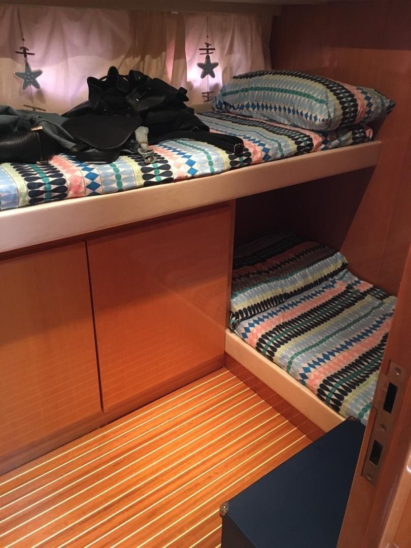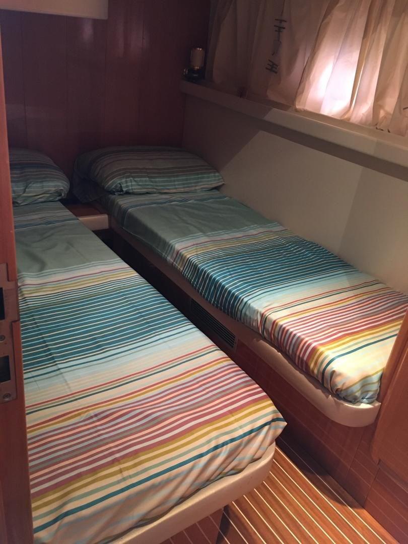 Intérieurs parfaits, grands espaces avec 3 cabines confortables, cabine propriétaire à l’avant avec salle de bain privée, 1 cabine lits au sol et 1 lits superposés.