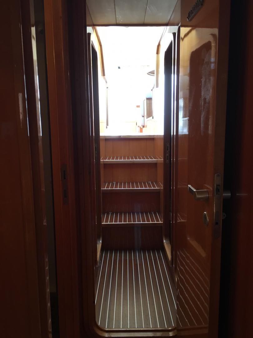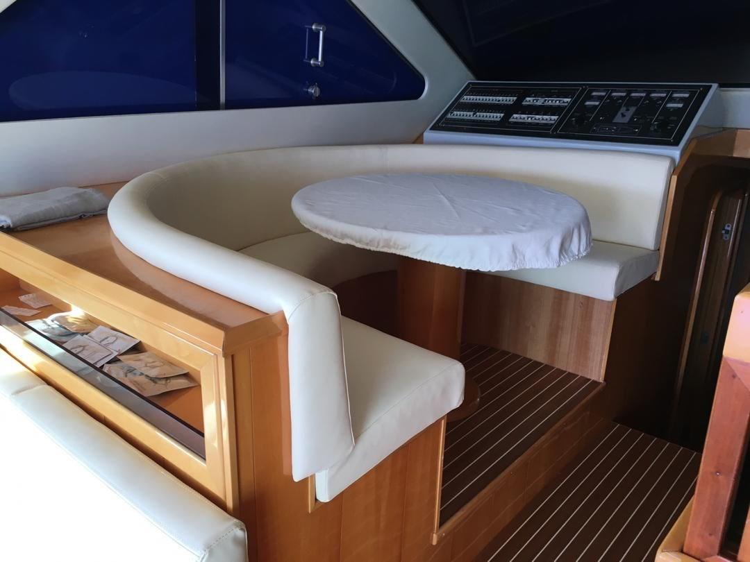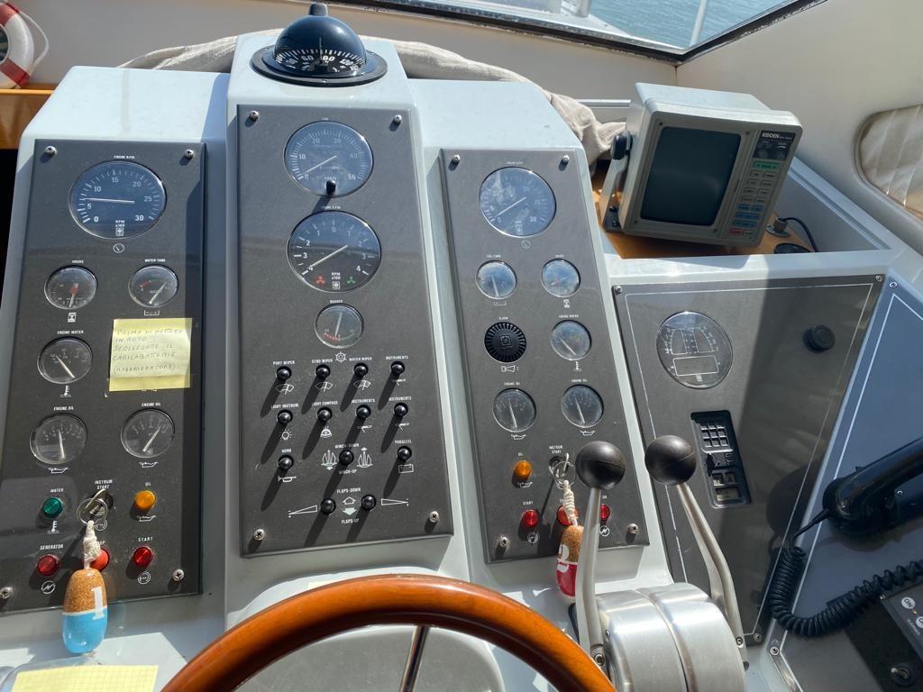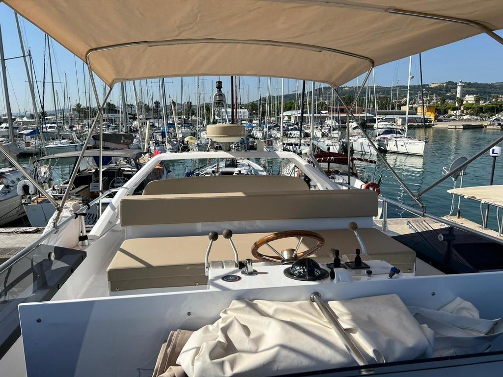Alarme moteur, Eau sous pression, Batteries (2022), Couleur spéciale (tortora nel 2022), Douche de cockpit, Double barre à roue, Phare de poursuite, Flaps hydrauliques, Bossoirs, Indicateurs de flaps, Spots sous-marins, Passerelle, Plateforme arrière (in teak), Pompe de cale automatique, Porte latérale, Cockpit en teck, Prise de quai, Connexion eau sous pression à quai, Onduleur, Répétiteur électronique, Rollbar, Guindeau électrique, Echelle de bain, table de cockpit, Annexe (Callegari 3m + yamaha 10hp (come nuovo )), Corne.