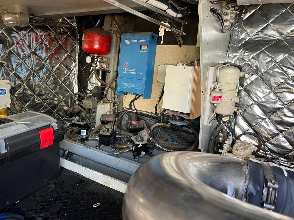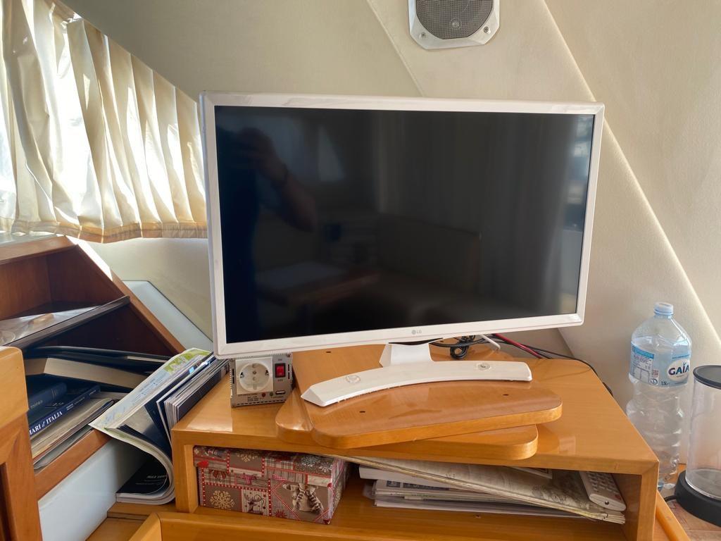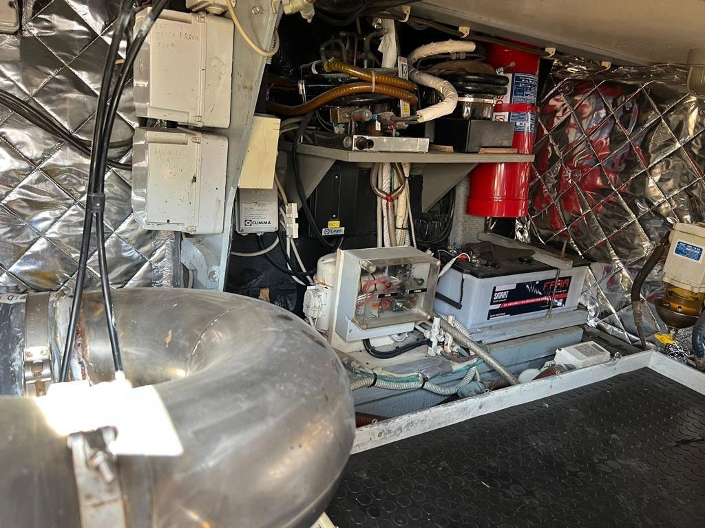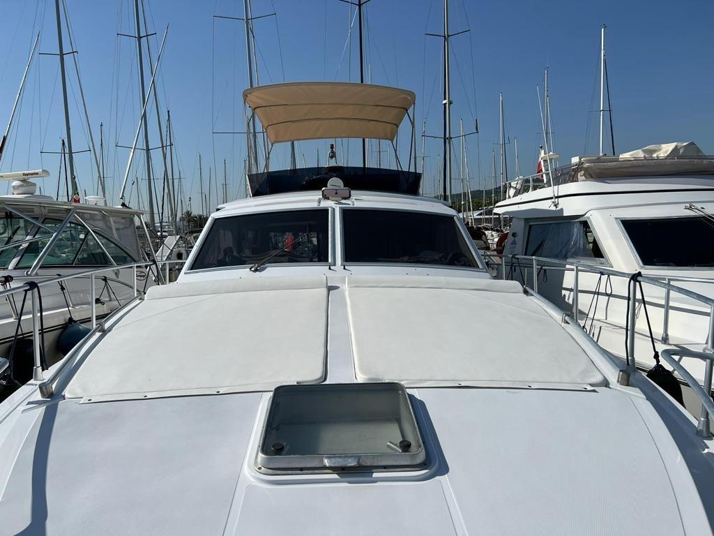 Alarme moteur, Eau sous pression, Batteries (2022), Couleur spéciale (tortora nel 2022), Douche de cockpit, Double barre à roue, Phare de poursuite, Flaps hydrauliques, Bossoirs, Indicateurs de flaps, Spots sous-marins, Passerelle, Plateforme arrière (in teak), Pompe de cale automatique, Porte latérale, Cockpit en teck, Prise de quai, Connexion eau sous pression à quai, Onduleur, Répétiteur électronique, Rollbar, Guindeau électrique, Echelle de bain, table de cockpit, Annexe (Callegari 3m + yamaha 10hp (come nuovo )), Corne.