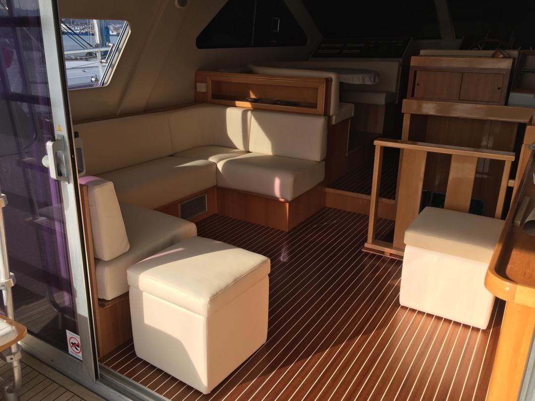 moteurs atterris et entièrement révisés par l’atelier CAT - Nouveaux coussins extérieurs - Plate-forme de bain en teck - Porte d’entrée en acier inoxydable avec verre miroir - Peinture de coque gris tourterelle - Nouveau système électrique - Projecteurs LED externes - Nouvelles batteries - Coussins extérieurs - Bimini - Revêtement de sol intérieur en teck - Nouveaux coussins intérieurs -