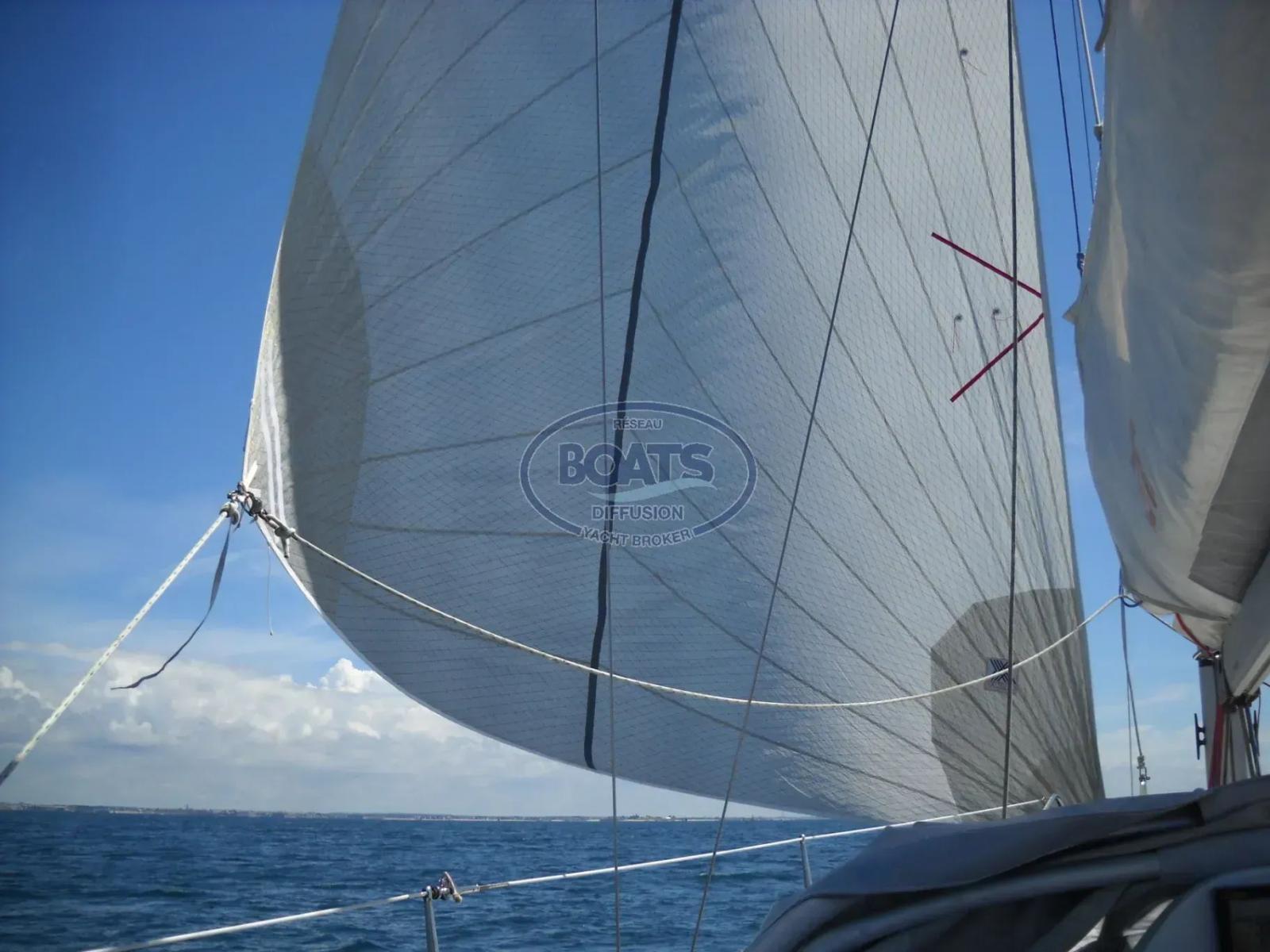 Gennaker Xvoiles Mylar sur emmagasineur Facnor (écoutes 18 m sur poulies ouvrantes)