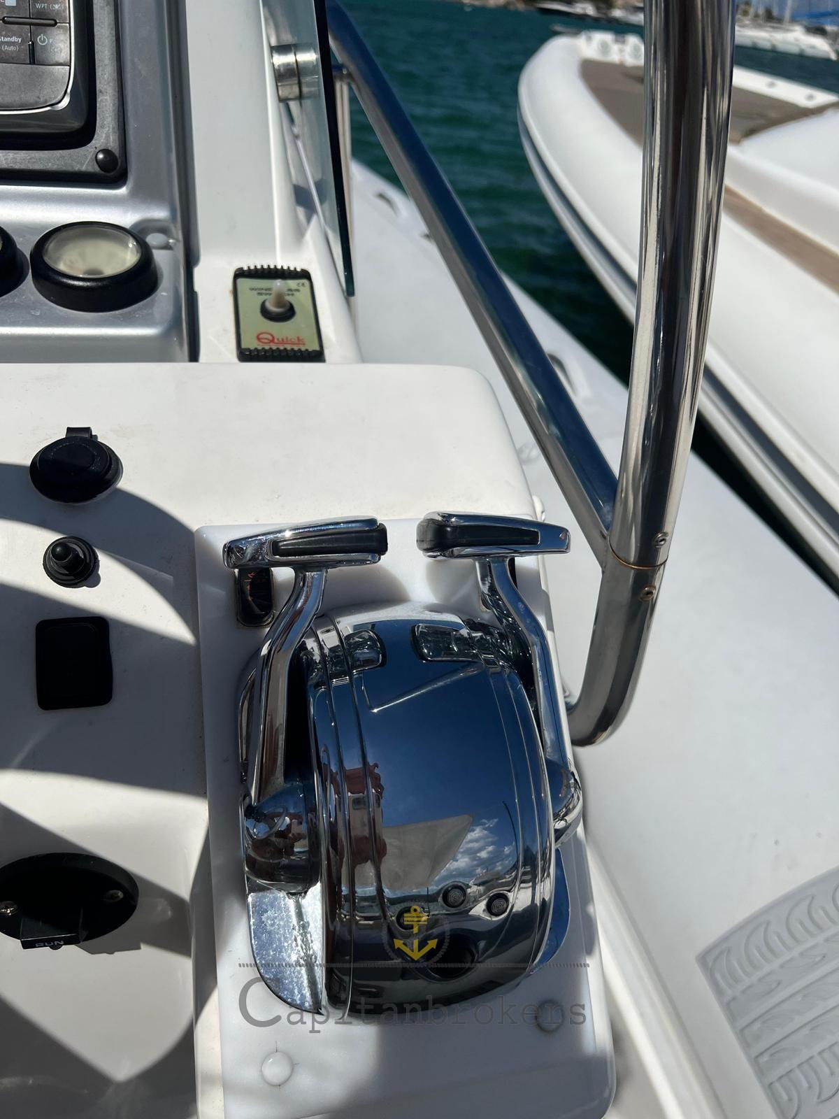 Alarme moteur, Alarme de pompe de cale, Eau sous pression, 4 Batteries (nuove), Douche de cockpit, Pompe de cale automatique, Pompe de cale manuelle, Prise de quai, Connexion eau sous pression à quai, Guindeau électrique, Corne.