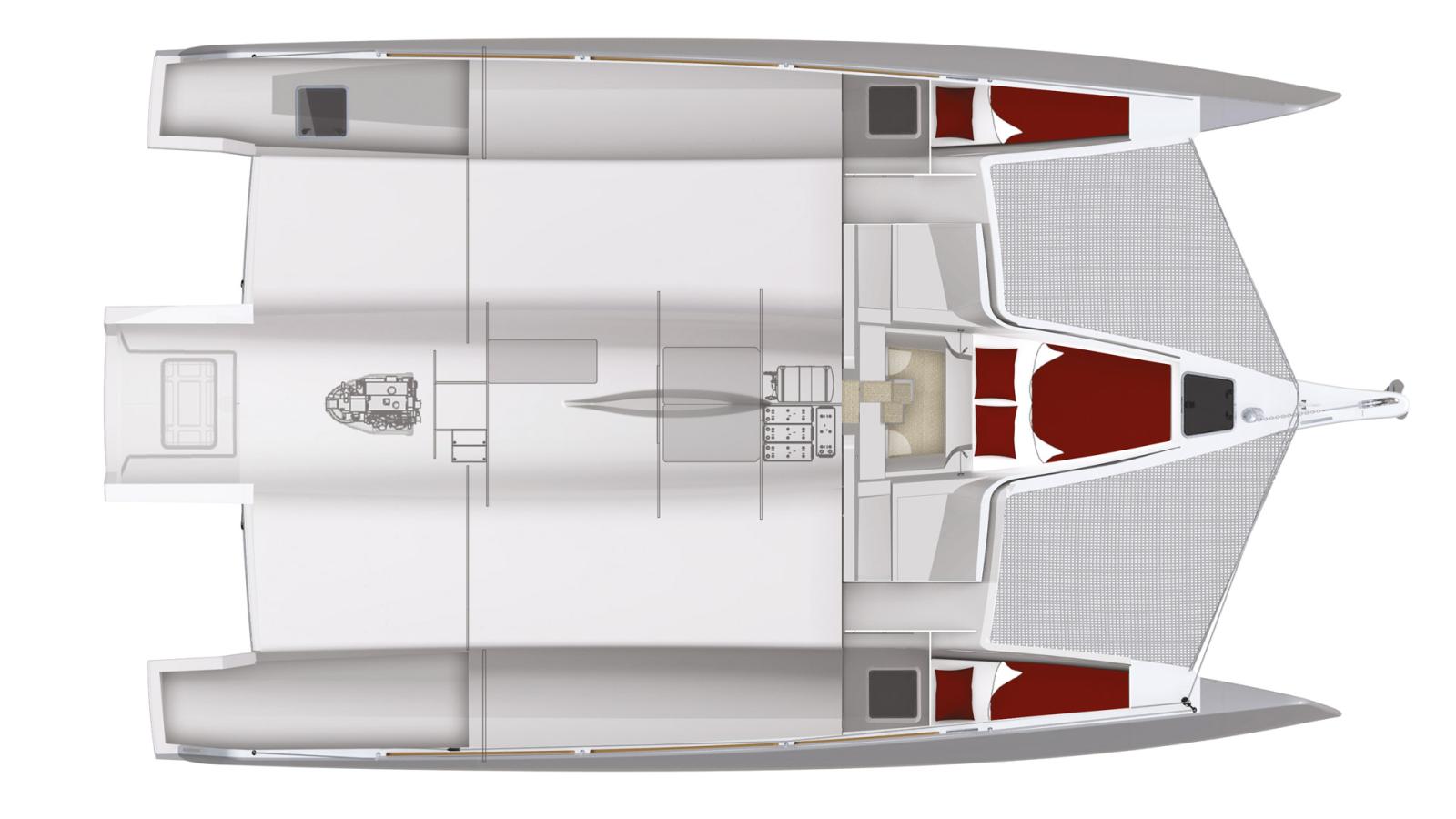 Il se distingue par sa combinaison unique de performances nautiques, de confort de vie à bord avec un intérieur lumineux et spacieux et d’aménagements innovants, en particulier grâce à son concept de “cockloon” : une fusion entre le cockpit et le salon