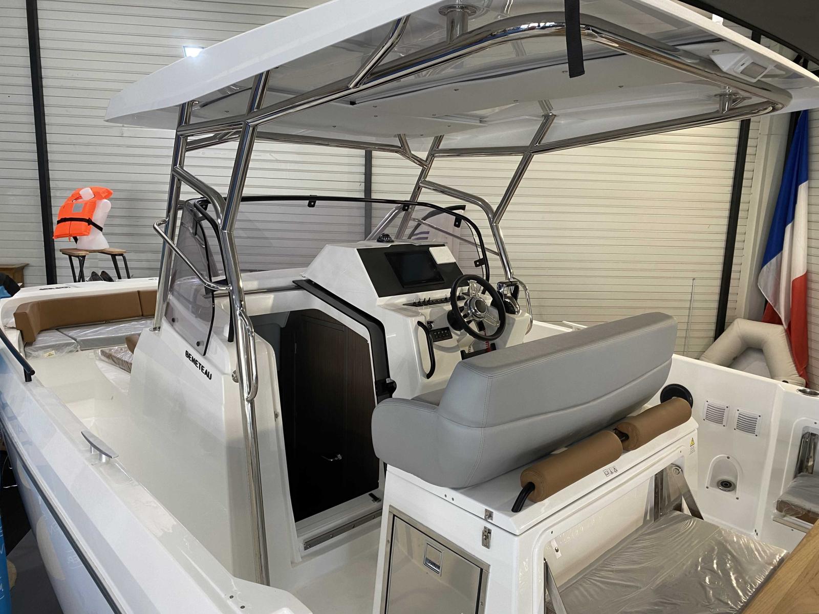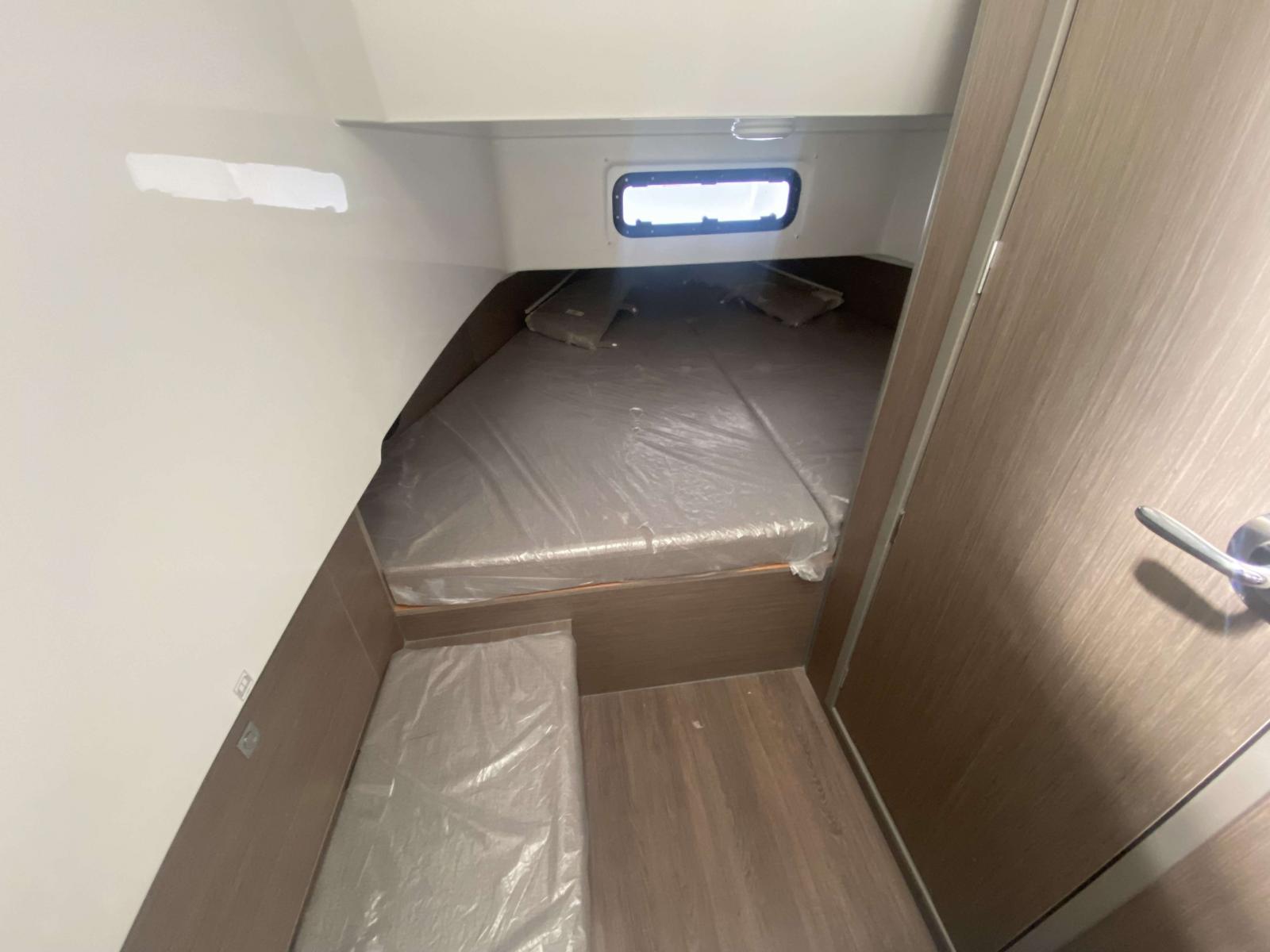 Le Flyer 9 SPACEdeck peut accueillir 4 personnes pour une nuit à bord grâce aux deux couchettes et une salle d’eau avec douche séparée.