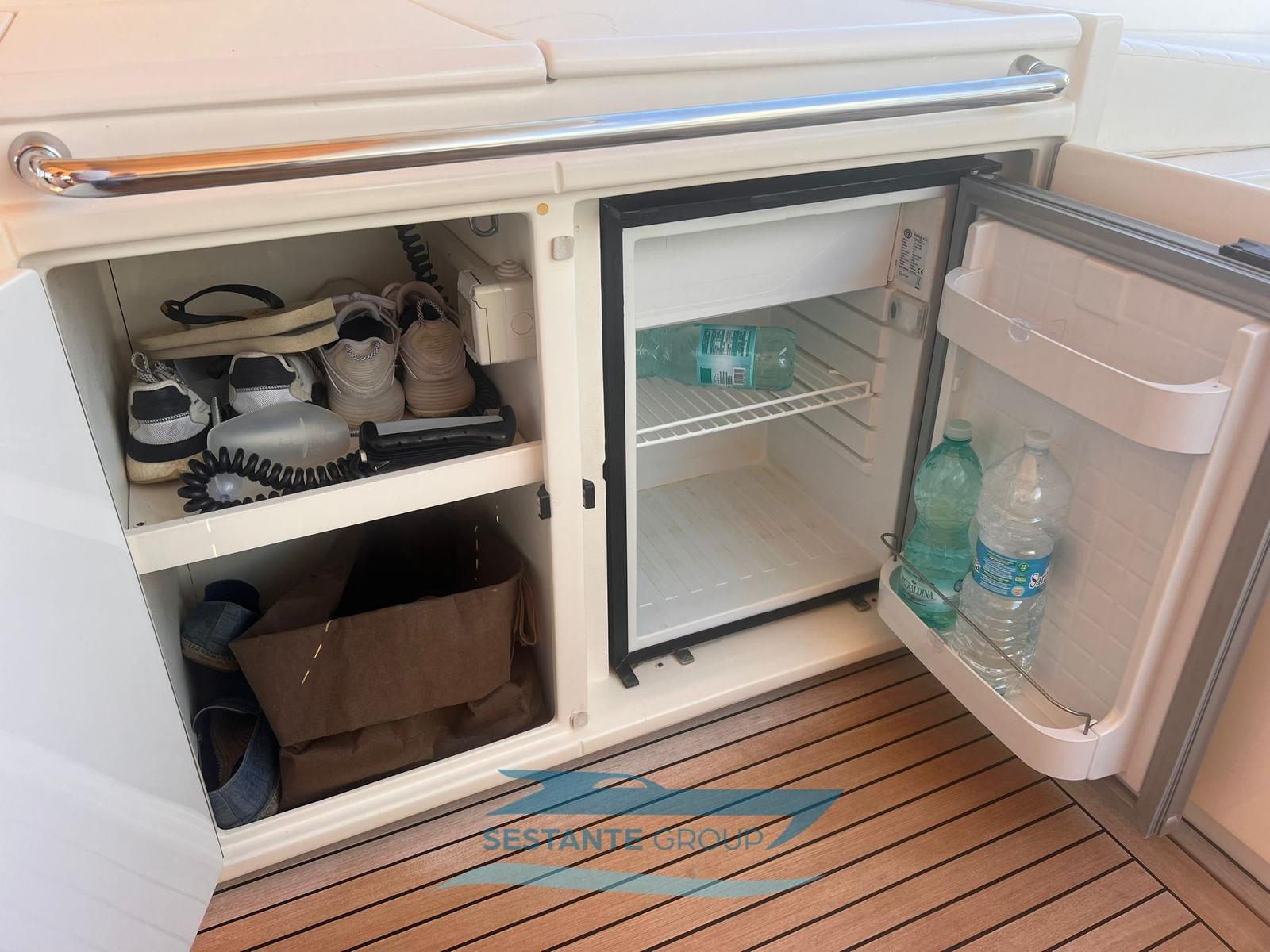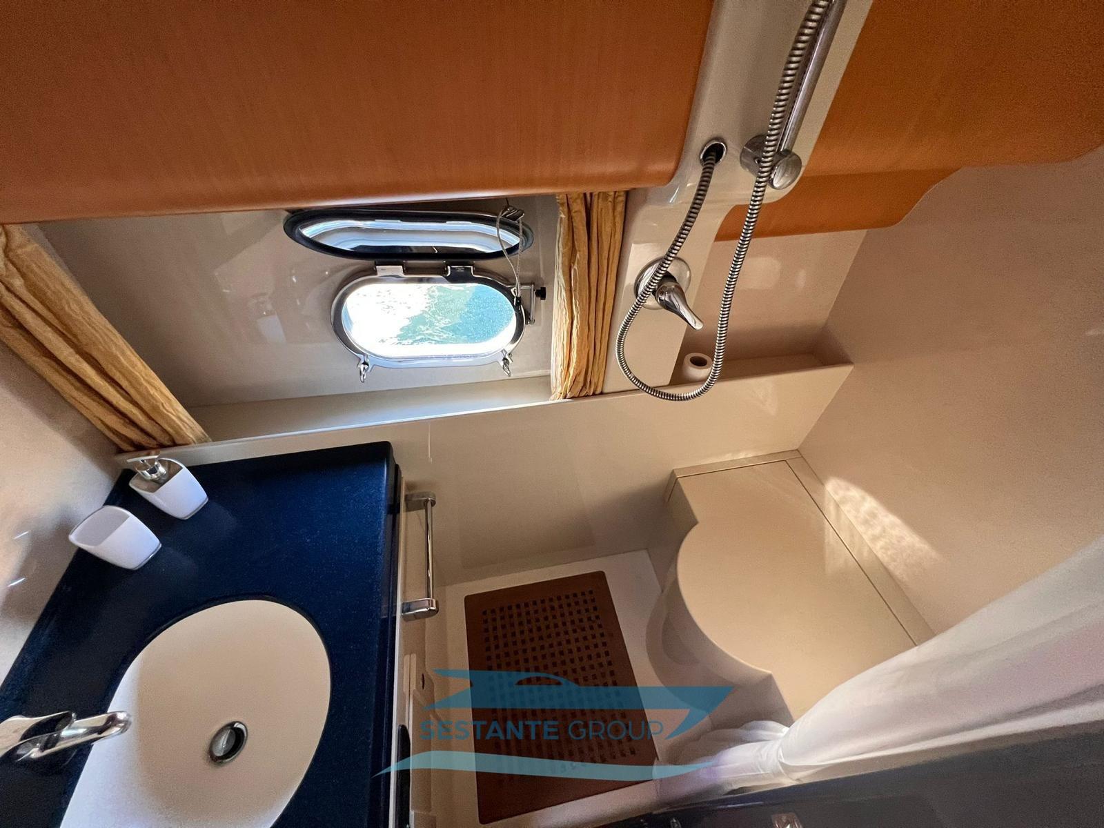 Alarme moteur, Alarme de pompe de cale, Eau sous pression, Douche de cockpit, Flaps hydrauliques, Lavabo dans le cockpit, Éclairage de courtoisie, Passerelle, Pompe de cale automatique, Porte latérale, Cockpit en teck, Prise de quai, Guindeau électrique, Echelle de bain, table de cockpit, Corne.