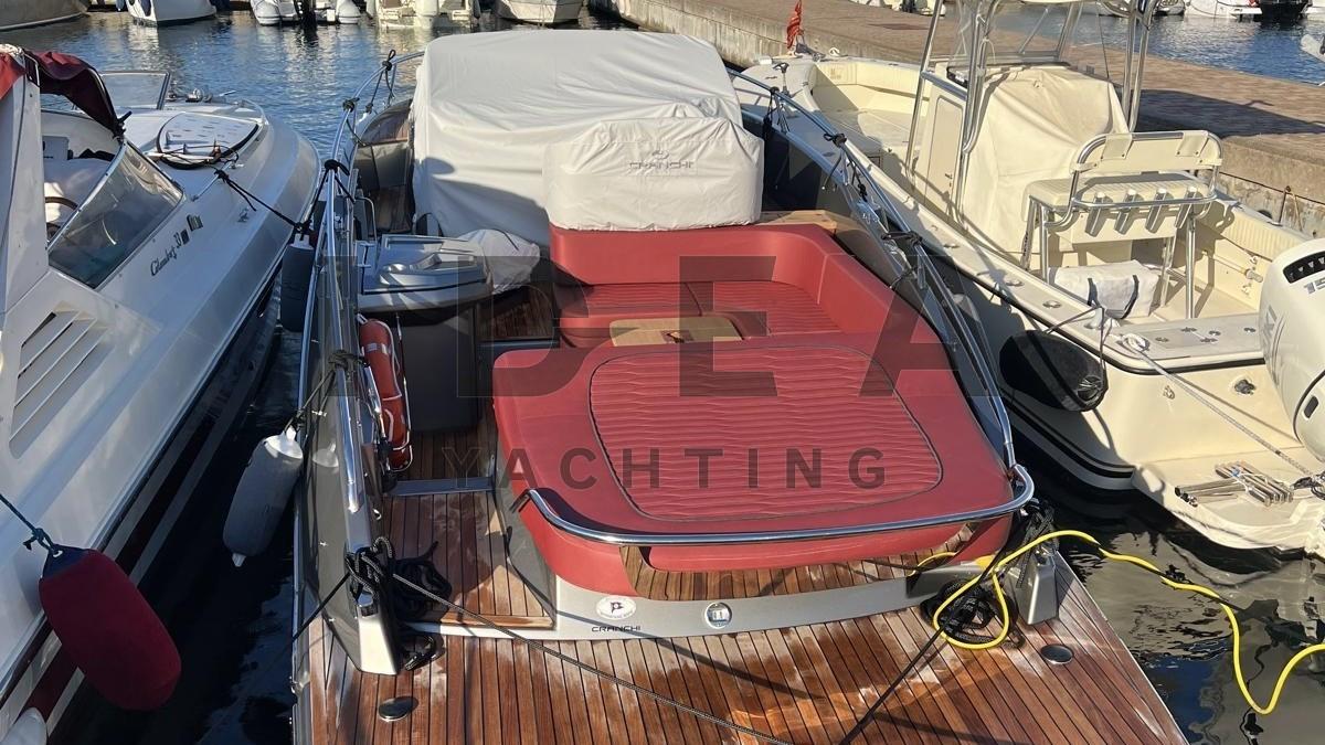 Ancre (Ultramarine in stainless steel 12kg), Pont en teck, Cockpit en teck, Prise de quai, Guindeau électrique (800w with 30mt chain), Stabilisateurs (Seakeeper SK1), table de cockpit, Table pliante de salon.