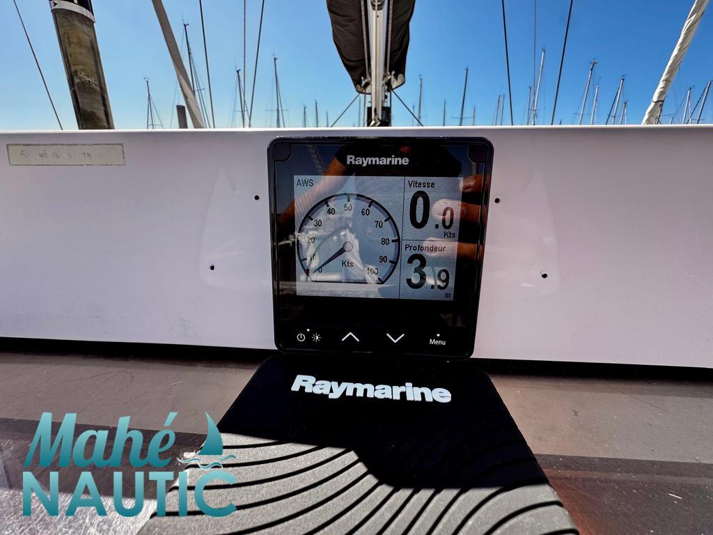 *Électronique : Combiné GPS/Sondeur Raymarine, Loch/Speedo, Girouette/Anémomètre (2022), Pilote automatique Raymarine ST6002, AIS700 Raymarine (2023), 4 répétiteurs Raymarine Tacktick (Révision en 2022), VHF portable + VHF fixe Raymarine RAY55E, Radio + enceintes.