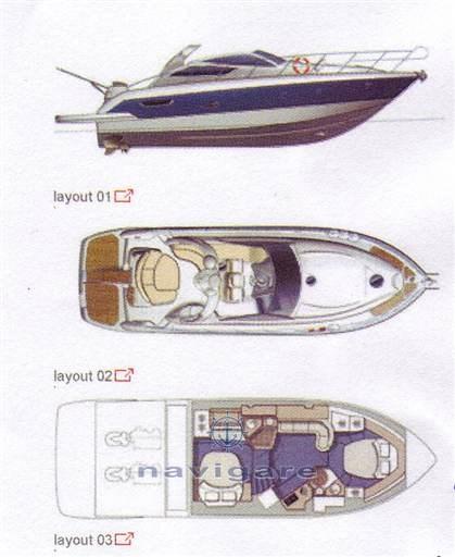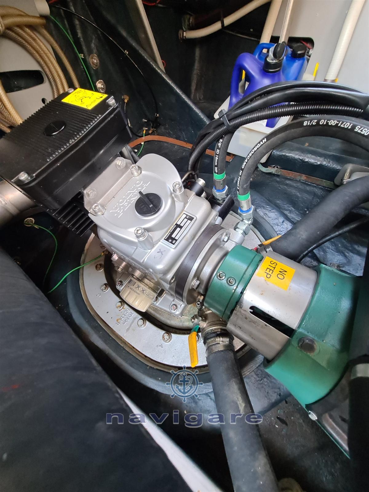 Alarme moteur, Alarme de pompe de cale, Ouverture du compartiment moteur électrique, 4 Batteries (2+2 2022), Douche de cockpit, Flaps électriques, Indicateurs de flaps, Éclairage de courtoisie (IMPIANTO NUOVO LED), Spots sous-marins (IMPIANTO NUOVO LED), Passerelle, Pompe de cale automatique, Cockpit en teck, Prise de quai, Connexion eau sous pression à quai, Guindeau électrique, Echelle de bain, table de cockpit, Table pliante de salon, Annexe (3.40m + HONDA 6 CV 2020), Corne.
