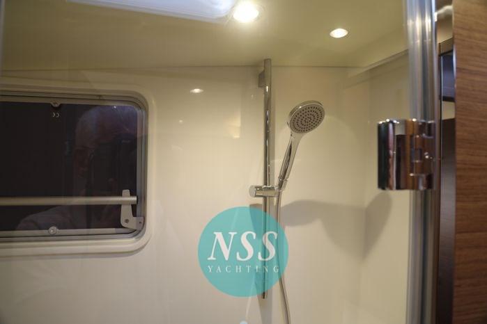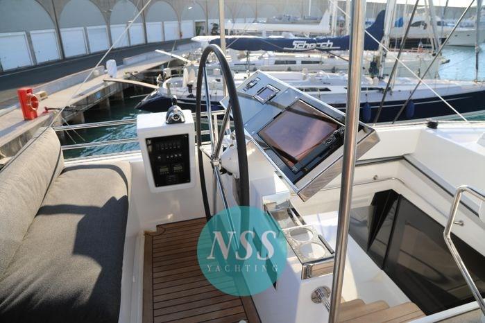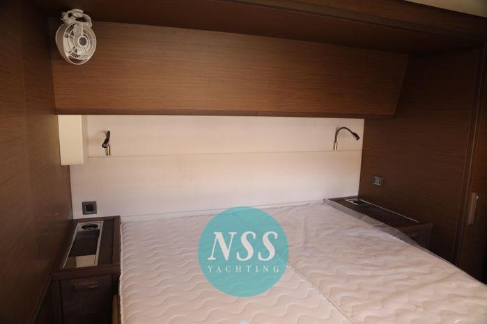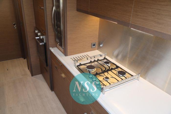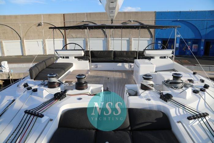 Alarme gaz, Alarme moteur, Alternateur, Eau sous pression, Batteries (840A al gel), Douche de cockpit, Double barre à roue, Éclairage de courtoisie, Spots sous-marins, Moteur d'annexe, Passerelle, Plateforme arrière, Pompe de cale automatique, Pompe de cale manuelle, Pont en teck, Porte latérale (al fly elettrica), Cockpit en teck, Prise de quai, Guindeau électrique, Gréement monotoron, Echelle de coupée, Echelle de bain, Chaise support HB, table de cockpit, Annexe, Corne, 3 Winch électrique, 2 Winch électrique arrière, Windex.