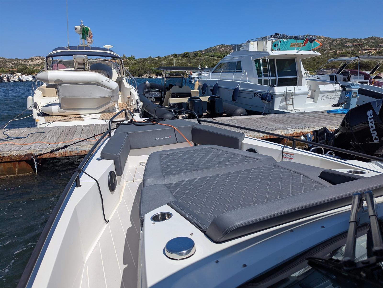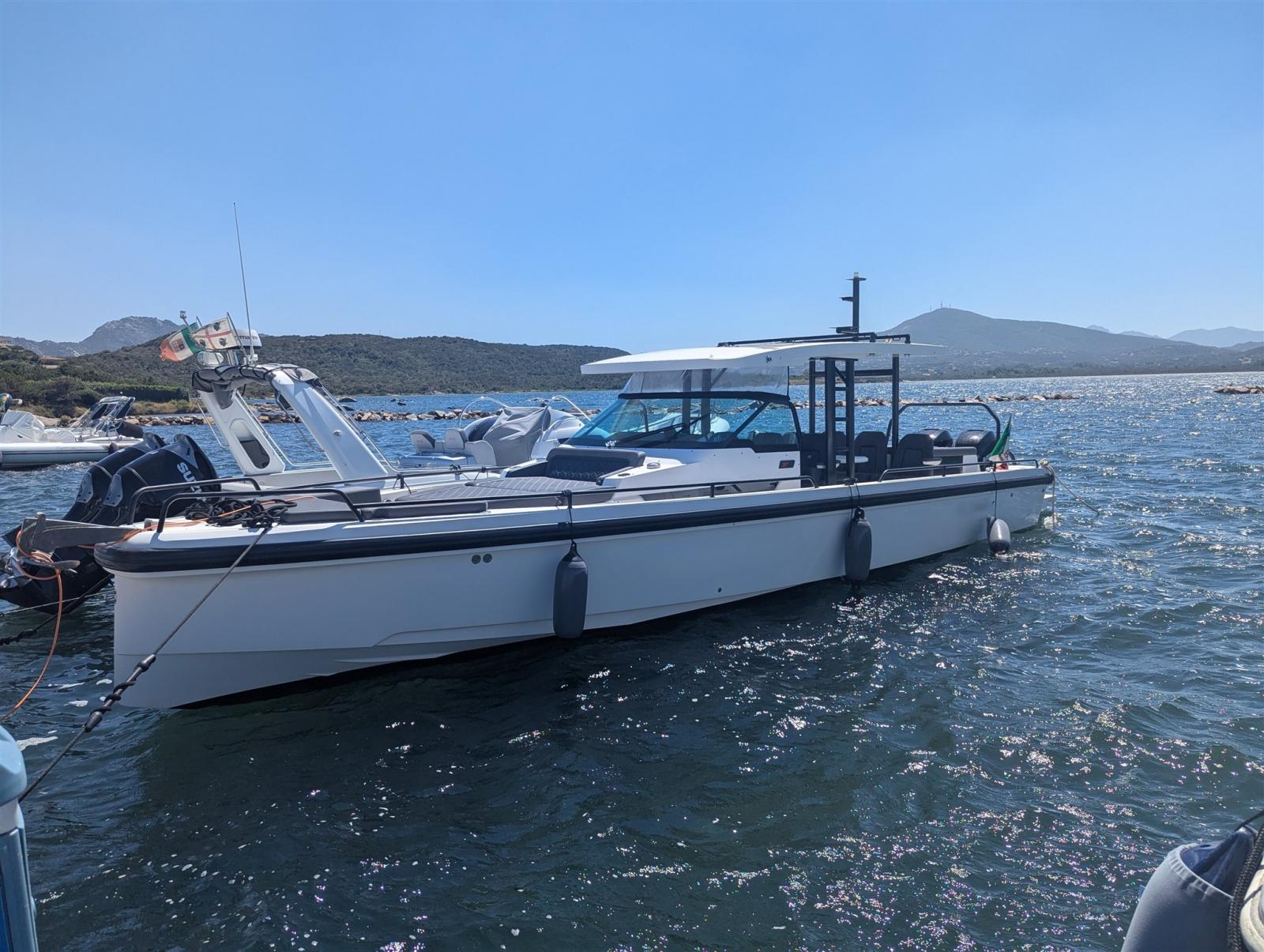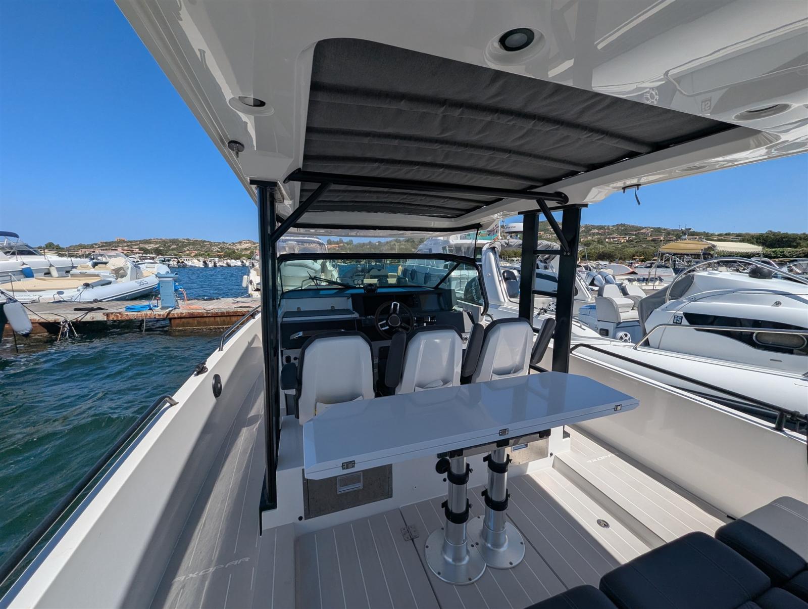 Chaque compteur à bord est utilisé pour la socialisation et la vie pratique ; À l’intérieur et maintenant aussi à l’extérieur, avec une myriade de nouvelles solutions et fonctionnalités à bord, qu’il s’agisse d’une croisière ou d’une escale au mouillage. L’Axopar 37 ST élève les espaces extérieurs à la même importance et à la même fonctionnalité, aussi sociable et pratique qu’ils sont confortables à l’intérieur. Ce bateau, avec ses caractéristiques polyvalentes, lors de sa mise à l’eau en 2016, s’est immédiatement avéré être une combinaison parfaite de bateau ouvert et fermé. Profitez d’une belle journée ensoleillée en famille, savourez des dîners « en plein air », organisez une fête entre amis ou pour ceux qui aiment la sensation de gérer un bateau ouvert mais toujours protégé des intempéries. Le 37 Sun Top, avec son toit ombragé sur toute la longueur, regorge d’une myriade de caractéristiques et de conforts innovants. Le toit allongé offre la meilleure protection possible contre l’ombre et les intempéries, sans compromettre l’espace et la polyvalence des côtés et de la zone du pont arrière. Le nouveau porte-bagages en option et les multiples compartiments de rangement vous permettent d’emporter tout votre équipement d’aventure avec vous. Prix plus honoraires d’agence.