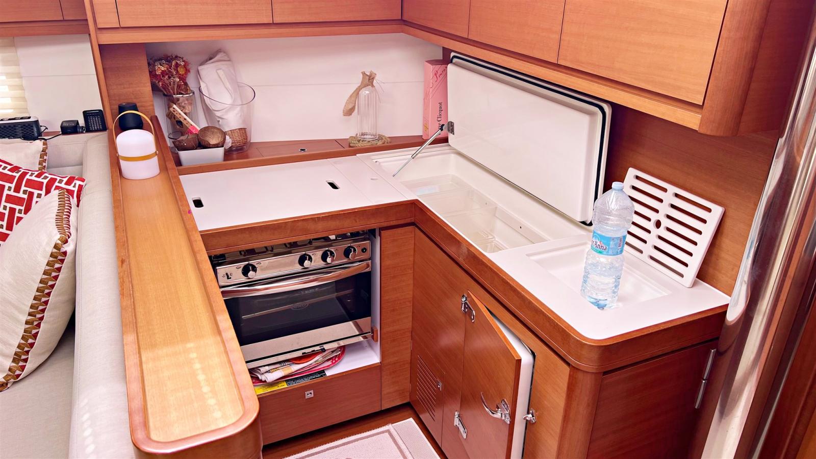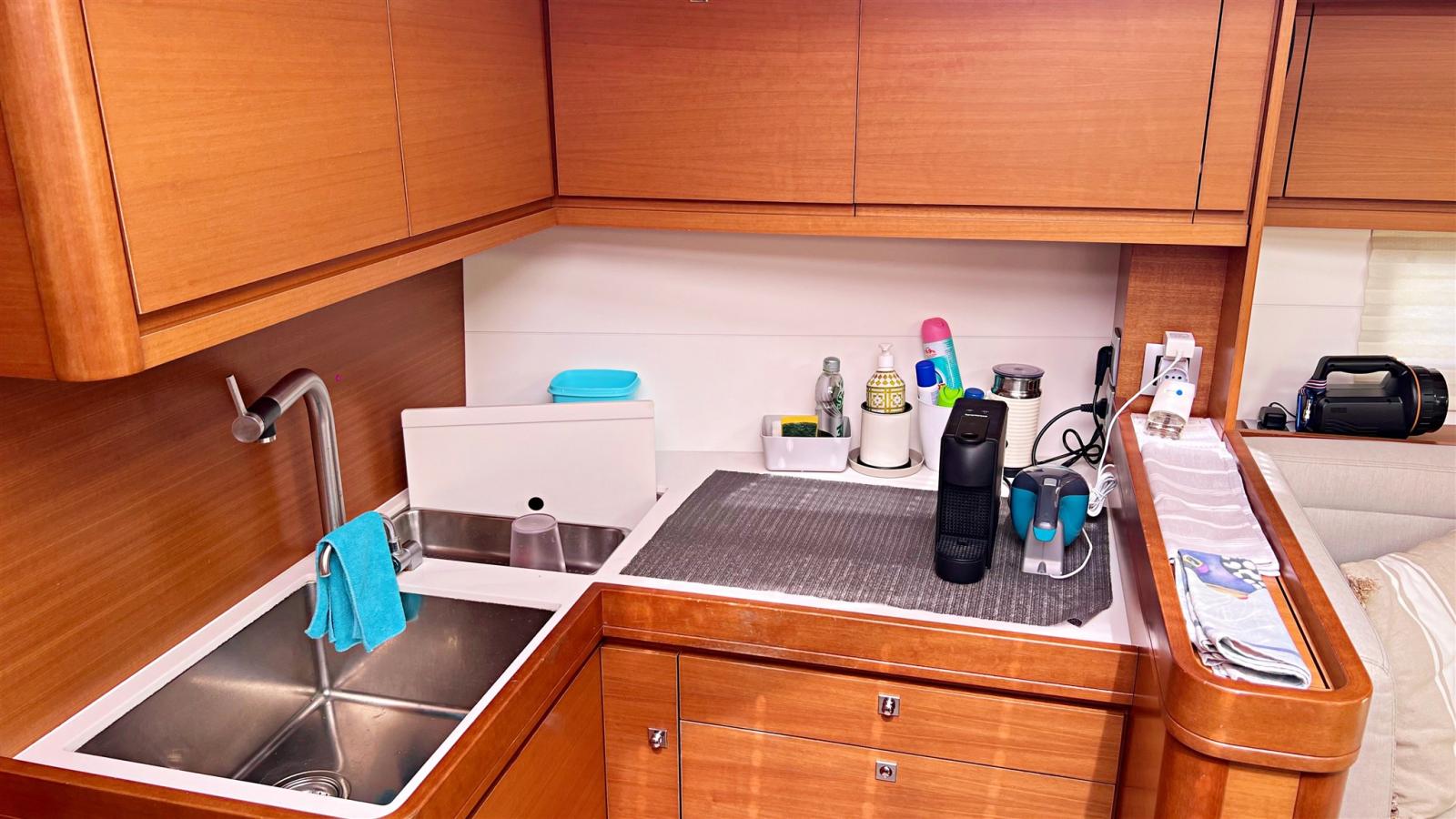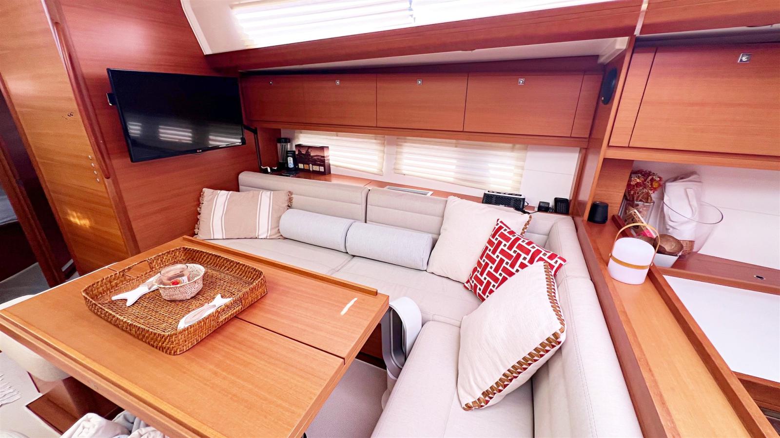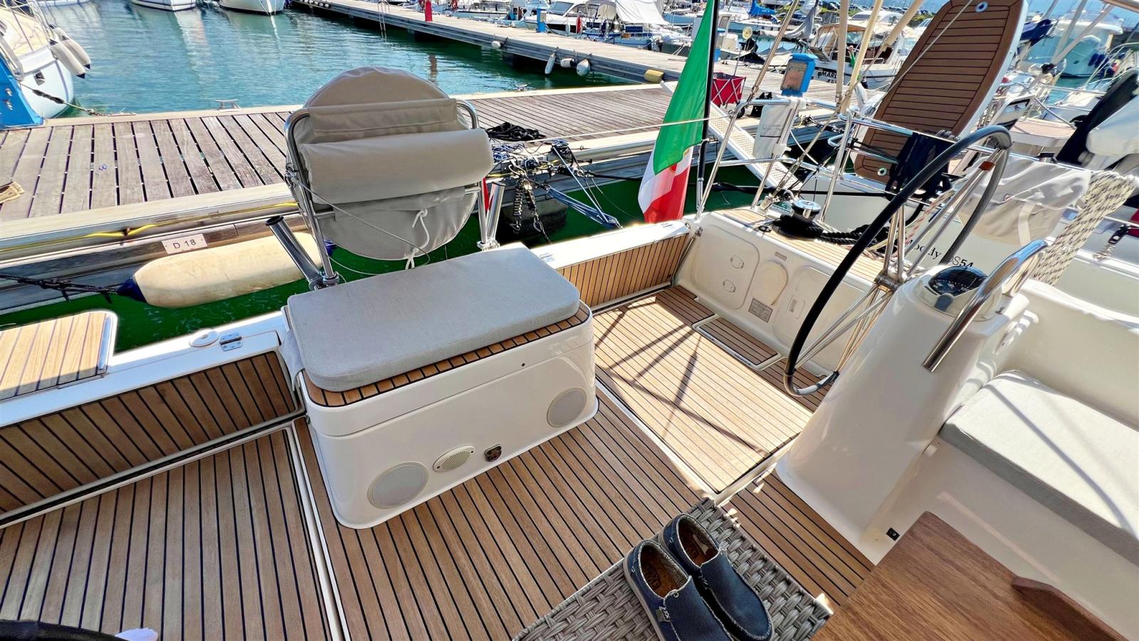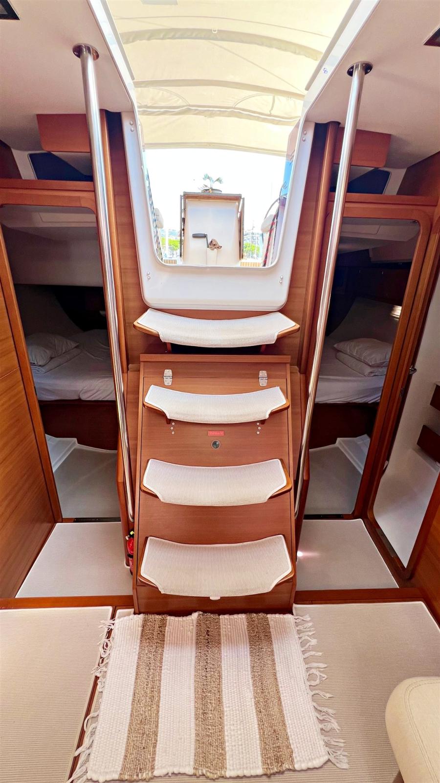 3 cabines, 3 salles de bains avec WC électriques, dinette convertible en lit. Calavele. Instrumentation Raymarine complète avec radar. Passerelle hydraulique Besenzoni. Climatisation avec pompe à chaleur. Onduleur 2500W. Propulseur d’étrave. Ponts et cockpit en teck. Treuils électriques. Treuil d’amarrage électrique à l’avant. Système TV avec antenne satellite. Réfrigérateur intérieur et extérieur. BBQ dans le cockpit. Micro-ondes. Auvent avec couverture complète du cockpit. Enrouleur Facnor neuf. Enrouleur de bout-dehors électrique Facnor. Bimini. Capote. Système SOS d’Allianz. Prise externe 220. Prises USB externes. Lampe de table de cockpit rétractable. Lampe de barbecue rétractable. Lumières LED sous-marines à l’arrière.