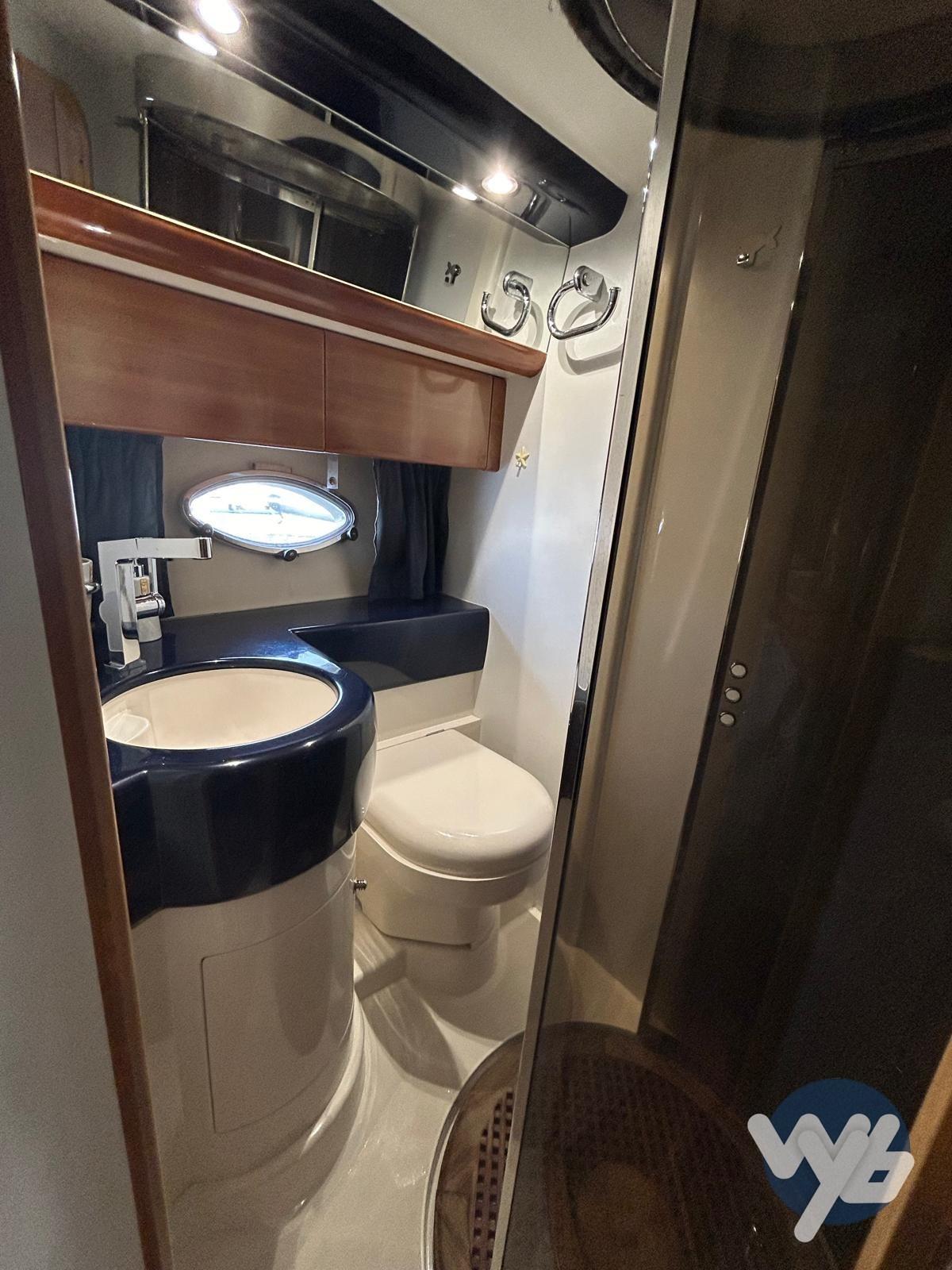 Alarme moteur, Alarme de pompe de cale, Eau sous pression, Douche de cockpit, Phare de poursuite, Flaps hydrauliques, Garage à annexe, Pompe de cale manuelle, Porte latérale, Cockpit en teck, Prise de quai, Connexion eau sous pression à quai, Rollbar, Guindeau électrique, Echelle de bain, table de cockpit, Winch électrique arrière.
