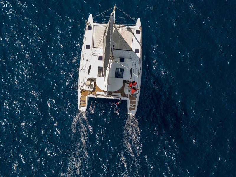 CAT 43, 2011, CONSTRUCTION FULL CARBONE AVEC REVÊTEMENT SUPPLÉMENTAIRE EN KEVLAR POUR LA CARENE, SOLIDE ET TRÈS RAPIDE, 2X 30 HP AVEC 560 HEURES MOTEUR, HÉLICES FLEX-O-FOLD 2 PALES REPLIABLES, DÉRIVES MOBILES EN CARBONE, MÂT ROTATIF ET BOUT-DEHORS ORIENTABLE, 4 CABINES CONFORTABLES, 2 TOILETTES ÉLECTRIQUES, RÉFRIGÉRATEUR 110 LT, CONGÉLATEUR, DESSALINISATEUR 60 LT/H, 8 PANNEAUX SOLAIRES (1.6 KW), GPS, AIS, VOILES 2024/23/19, GRÉEMENT PBO 2018, TABLE DE COCKPIT AMOVIBLE, BIMINI EN CARBONE, FERMETURE COMPLÈTE DU COCKPIT EN FILET, TAUD AVANT, COUSSINS EXTÉRIEURS COCKPIT ET AVANT, PULPITS, CHANDELIERS, DAVIER ET TAQUETS EN TITANE, PASSERELLE EN CARBONE, +39 06 65 22 258/9, www.mediaship.it