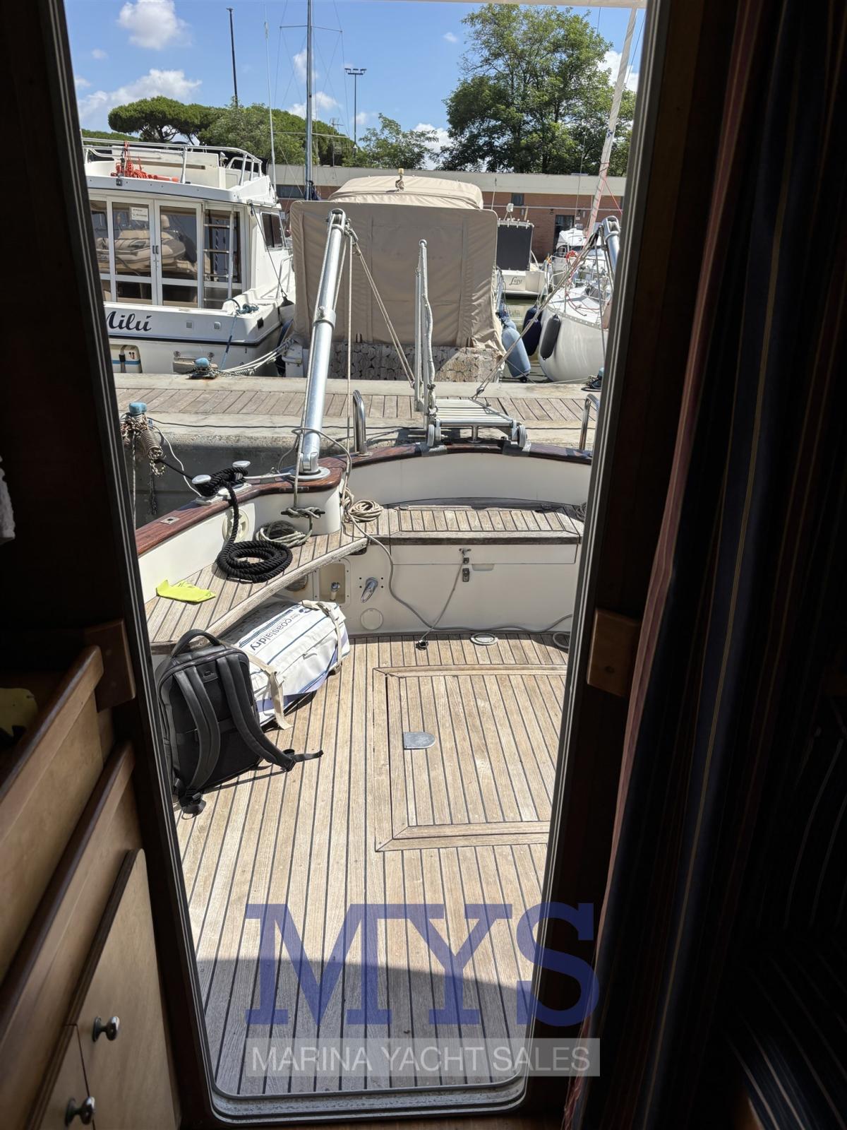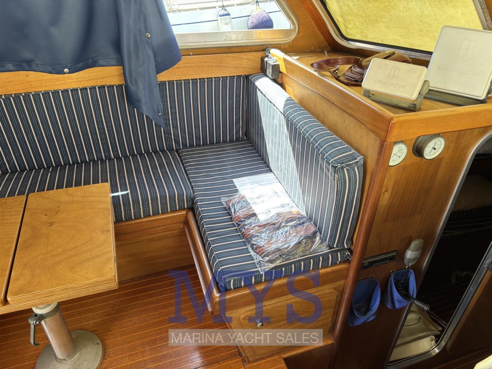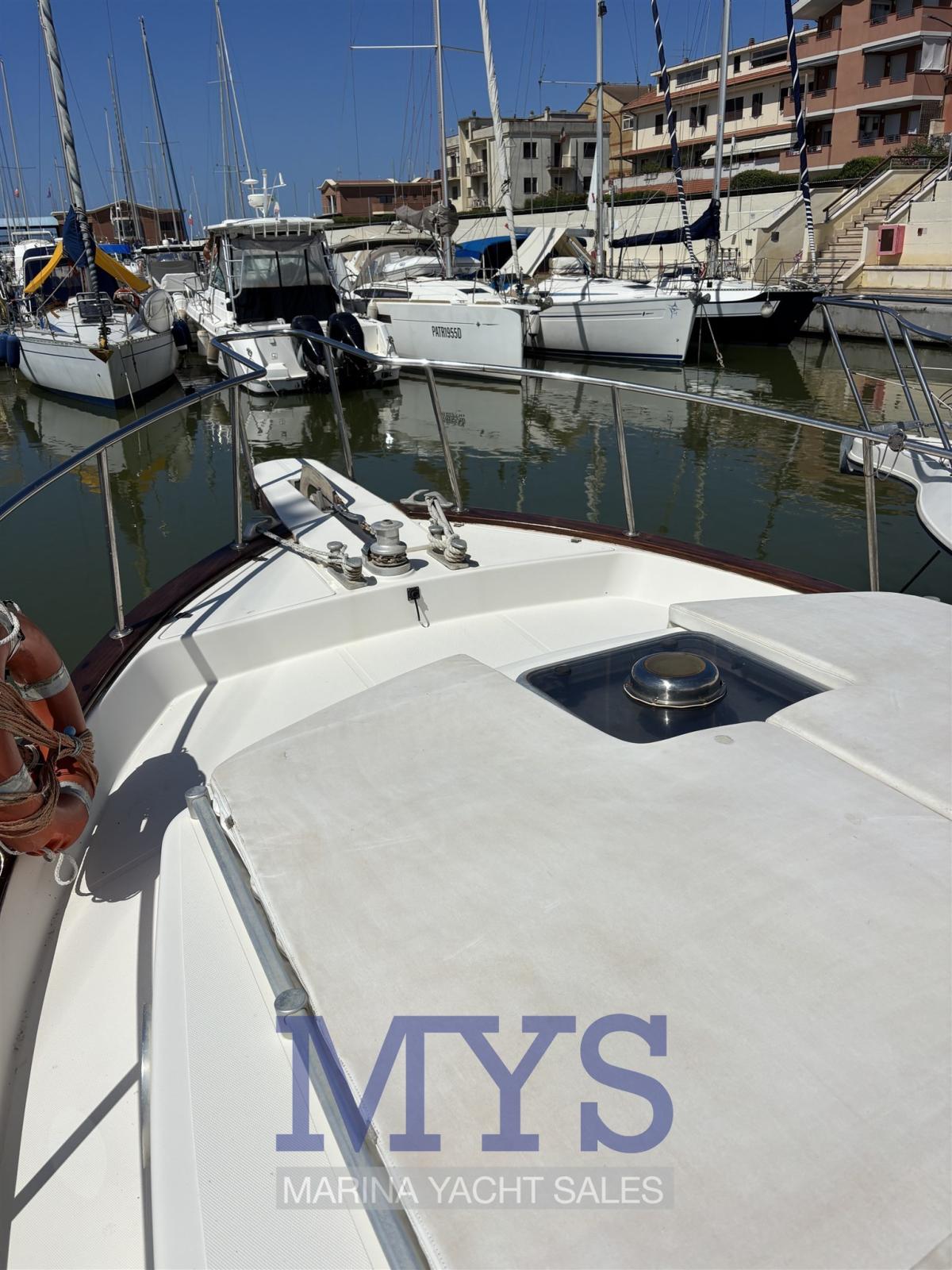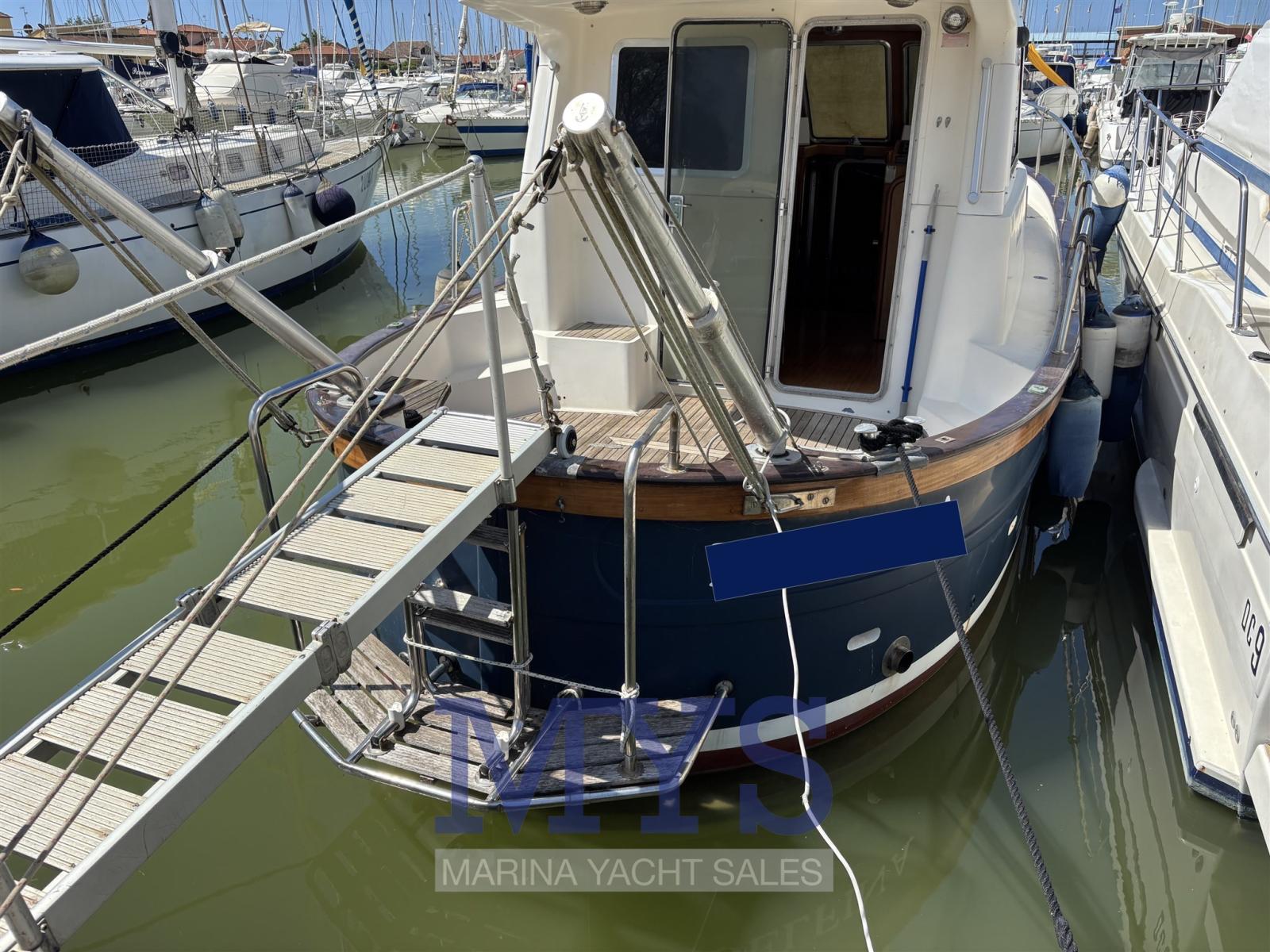 Alarme moteur, Alternateur, Eau sous pression, Douche de cockpit, Phare de poursuite, Flaps hydrauliques, Bossoirs, Passerelle, Plateforme arrière, Pompe de cale automatique, Porte latérale, Cockpit en teck, Prise de quai, Guindeau électrique, Echelle de bain, Table pliante de salon, Corne.