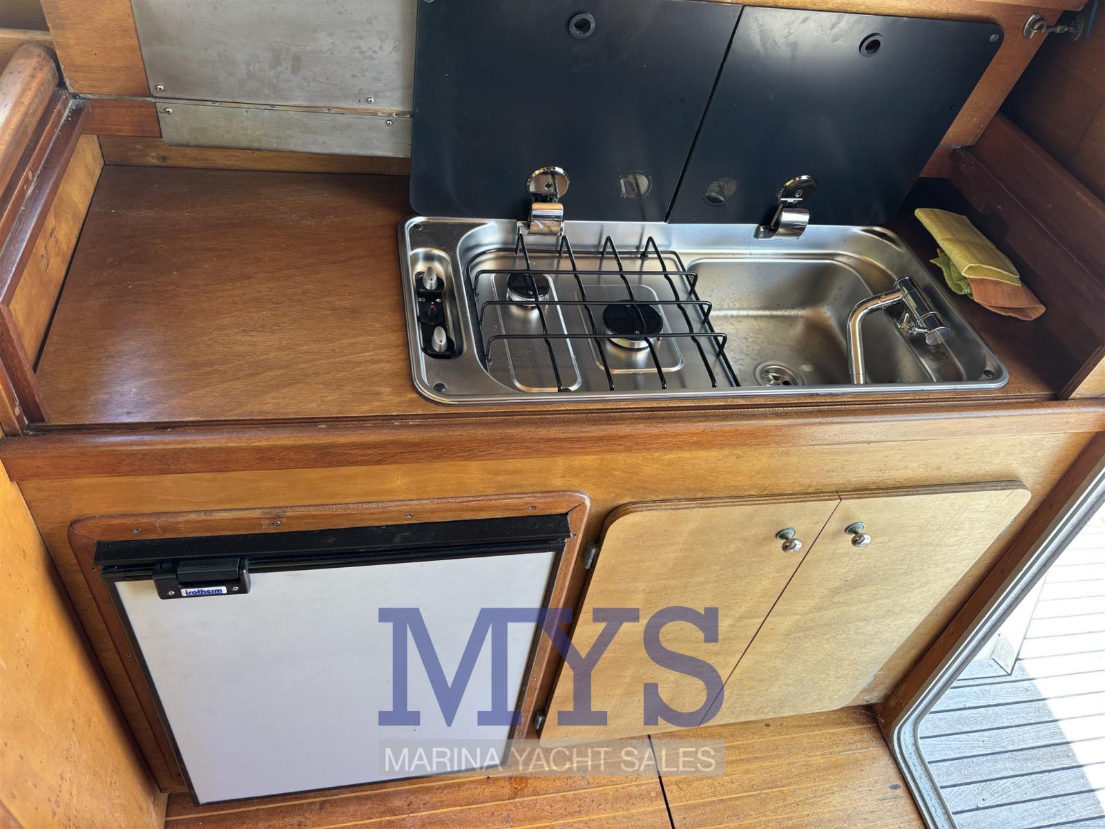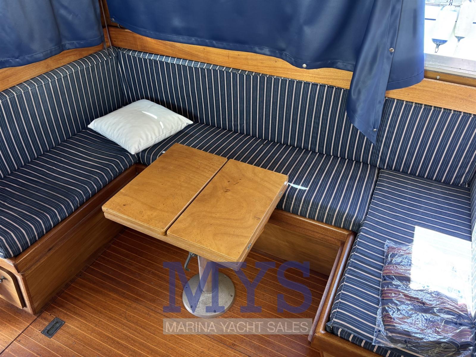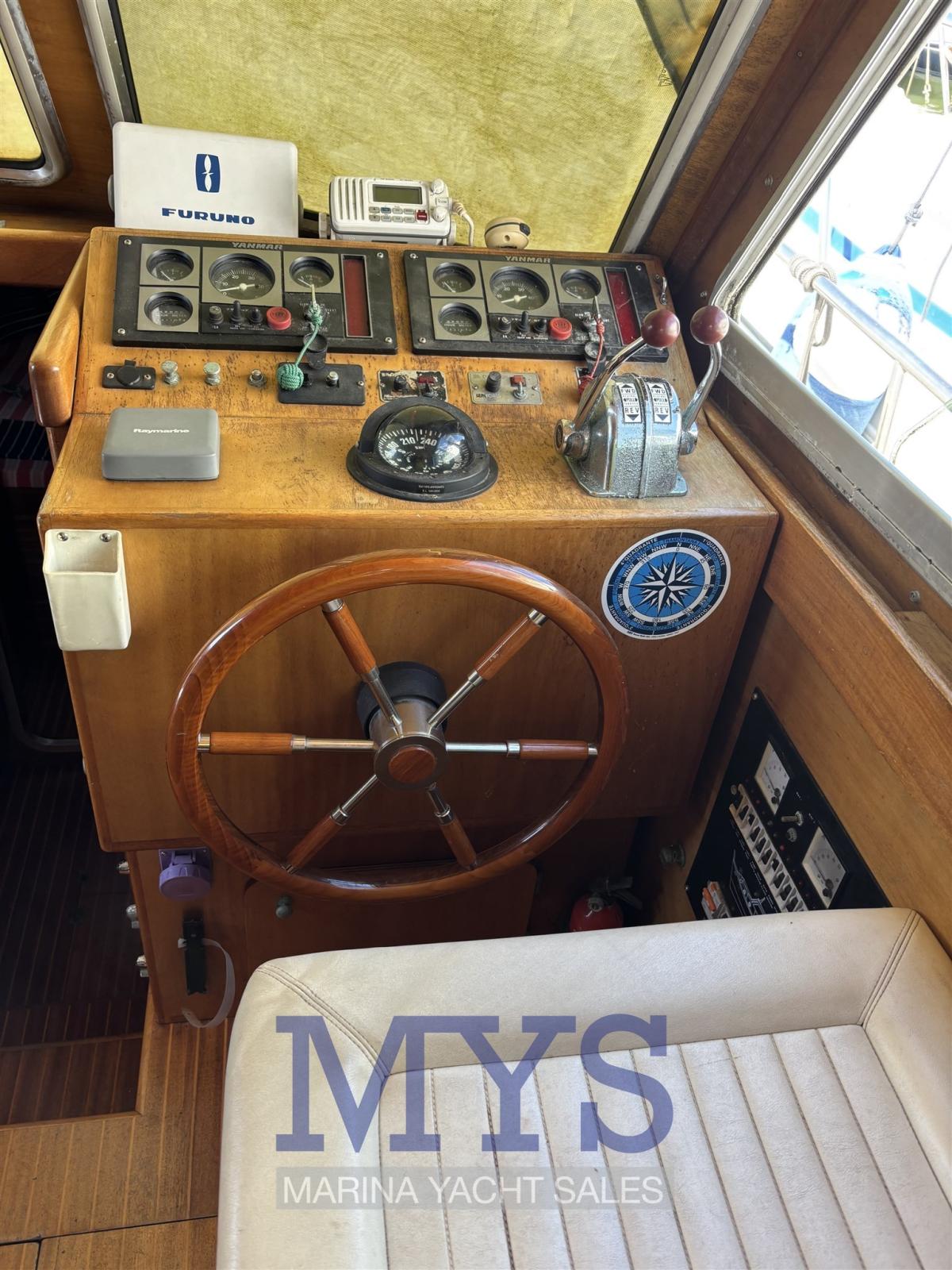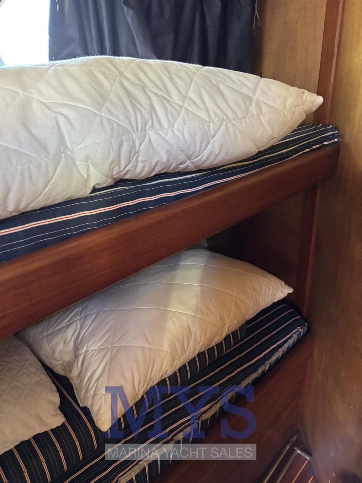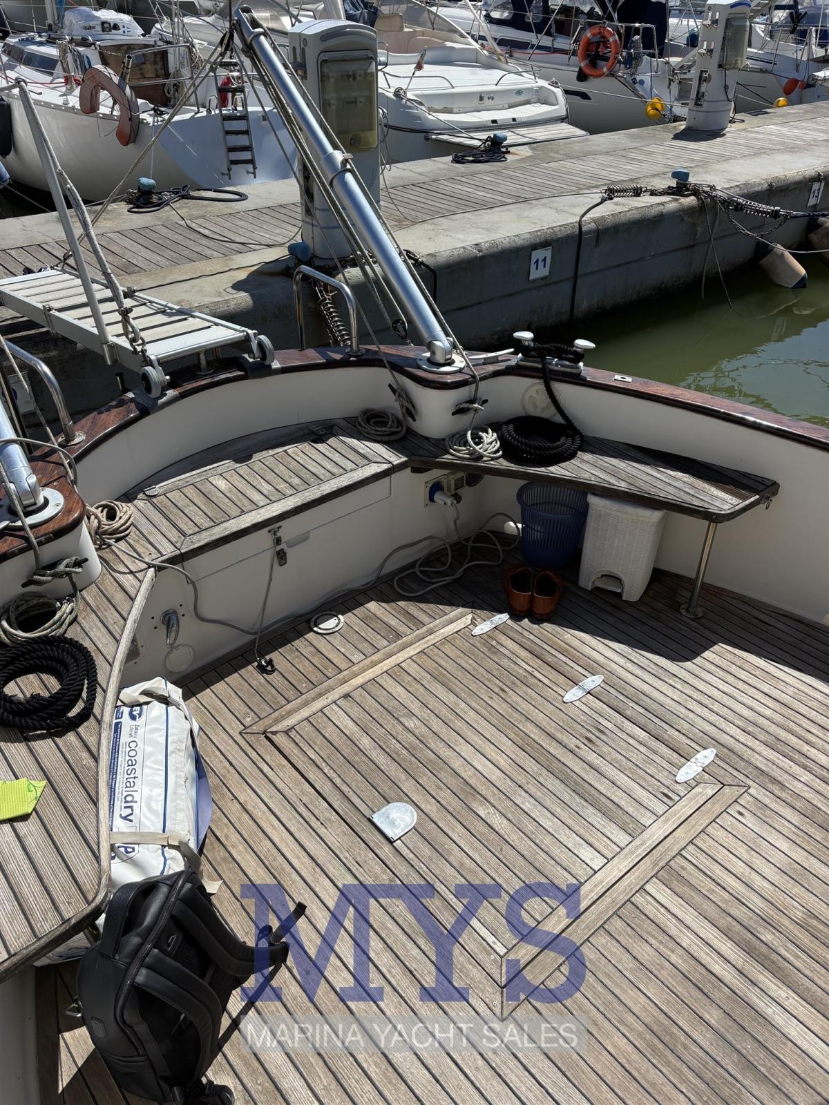 Alarme moteur, Alternateur, Eau sous pression, Douche de cockpit, Phare de poursuite, Flaps hydrauliques, Bossoirs, Passerelle, Plateforme arrière, Pompe de cale automatique, Porte latérale, Cockpit en teck, Prise de quai, Guindeau électrique, Echelle de bain, Table pliante de salon, Corne.