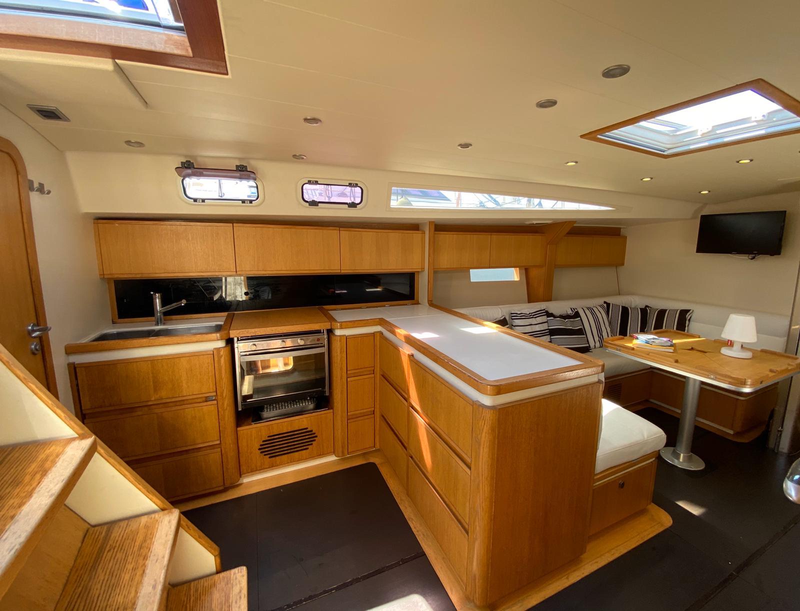 Avec ses 16 mètres, ce voilier offre des espaces de vie confortables et bien agencés, permettant une vie à bord agréable pour les longues croisières.
