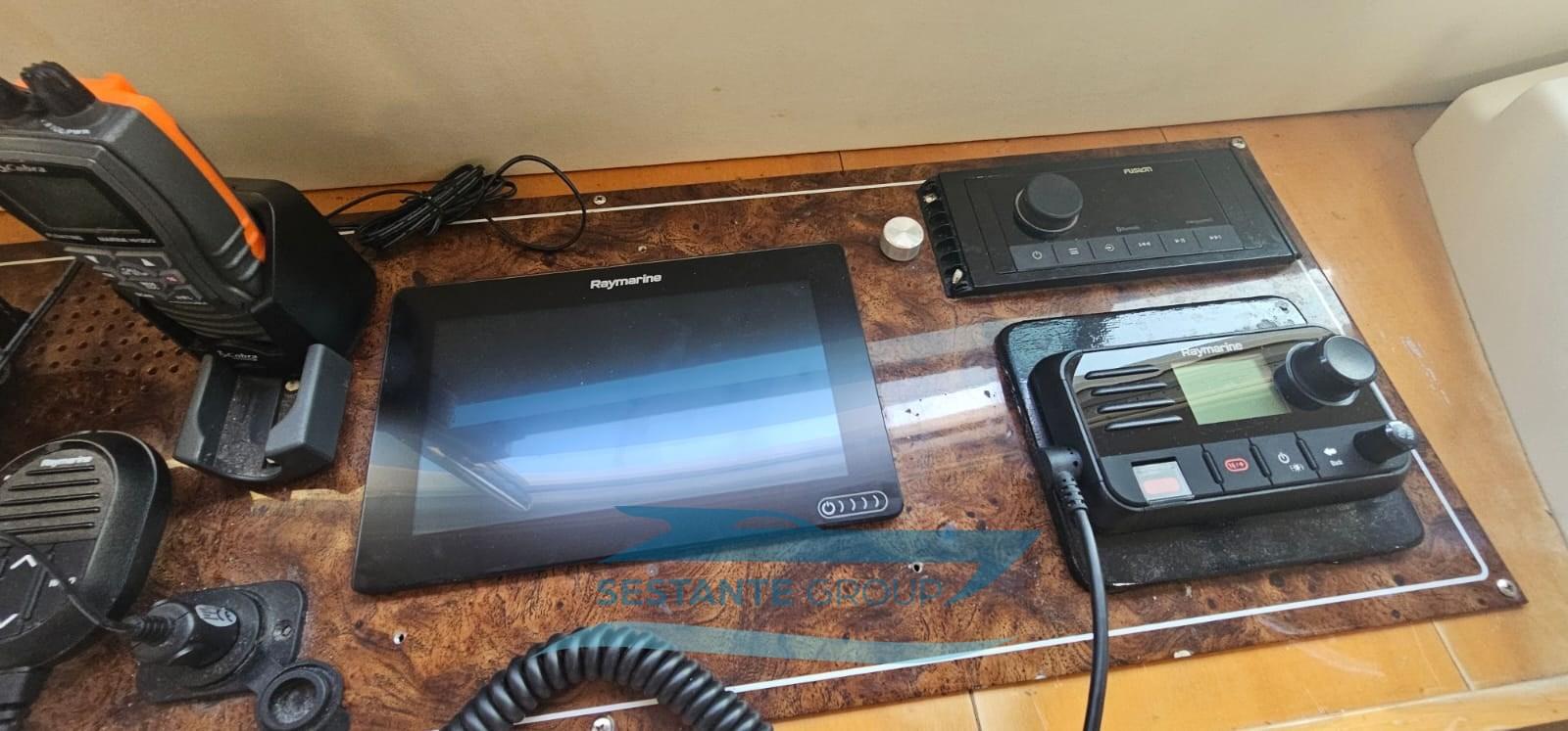 Eau sous pression, Douche de cockpit, Double barre à roue, Flaps hydrauliques, Lavage de chaine, Éclairage de courtoisie, Spots sous-marins, Plateforme arrière, Pompe de cale automatique, Prise de quai, Onduleur, Guindeau électrique, Echelle de bain, table de cockpit, Annexe.