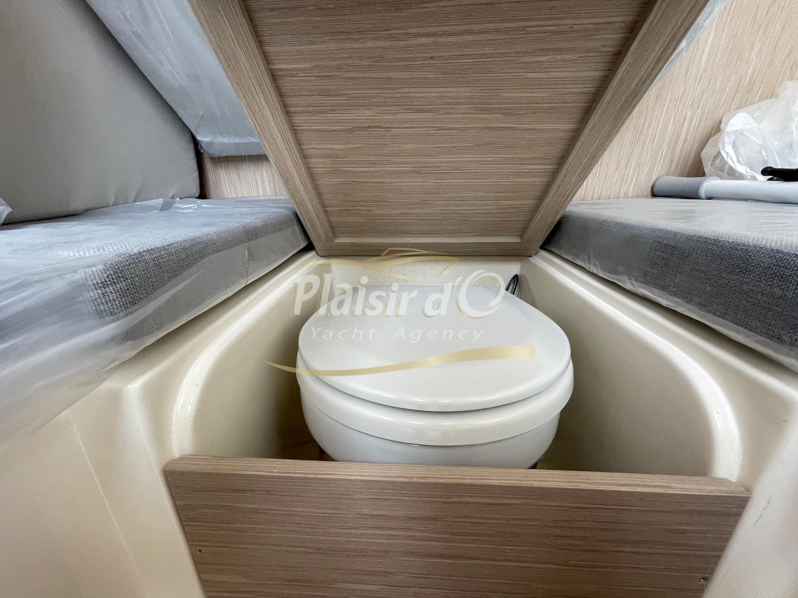 Bateau très modulable qui dispose d’une cabine avec WC électriques.