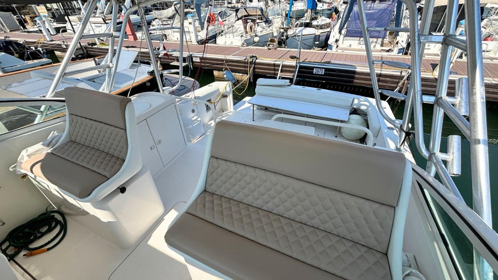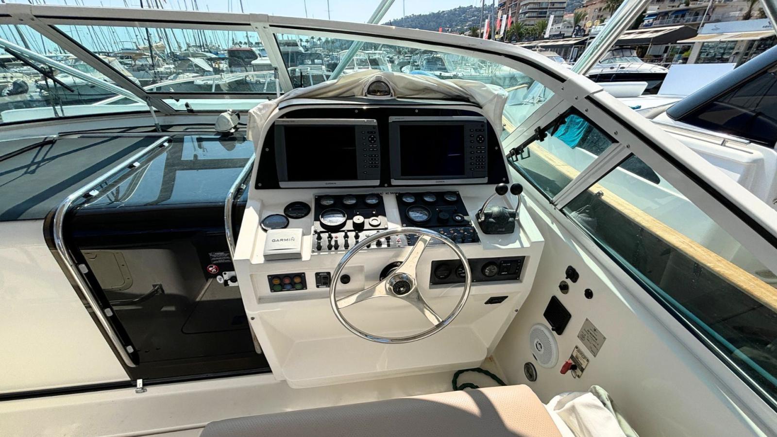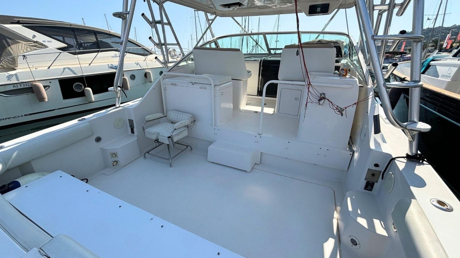 Ce bateau de 2000 est propulsé par 2 moteurs Volvo de 400 CV en ligne d’arbre, offrant une navigation puissante, fluide et sécurisante. Idéal pour la croisière côtière ou la pêche sportive.