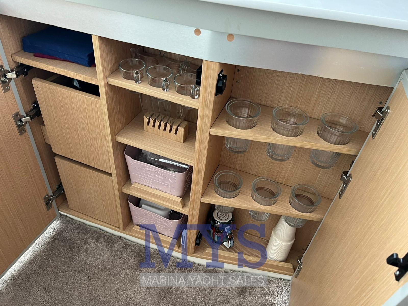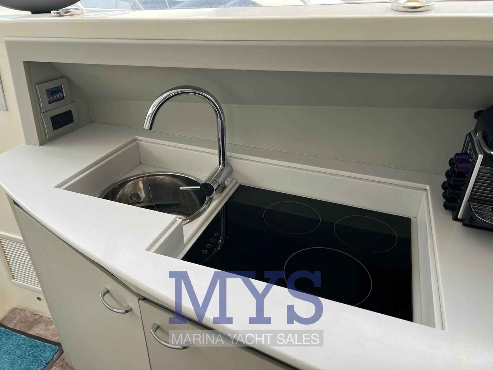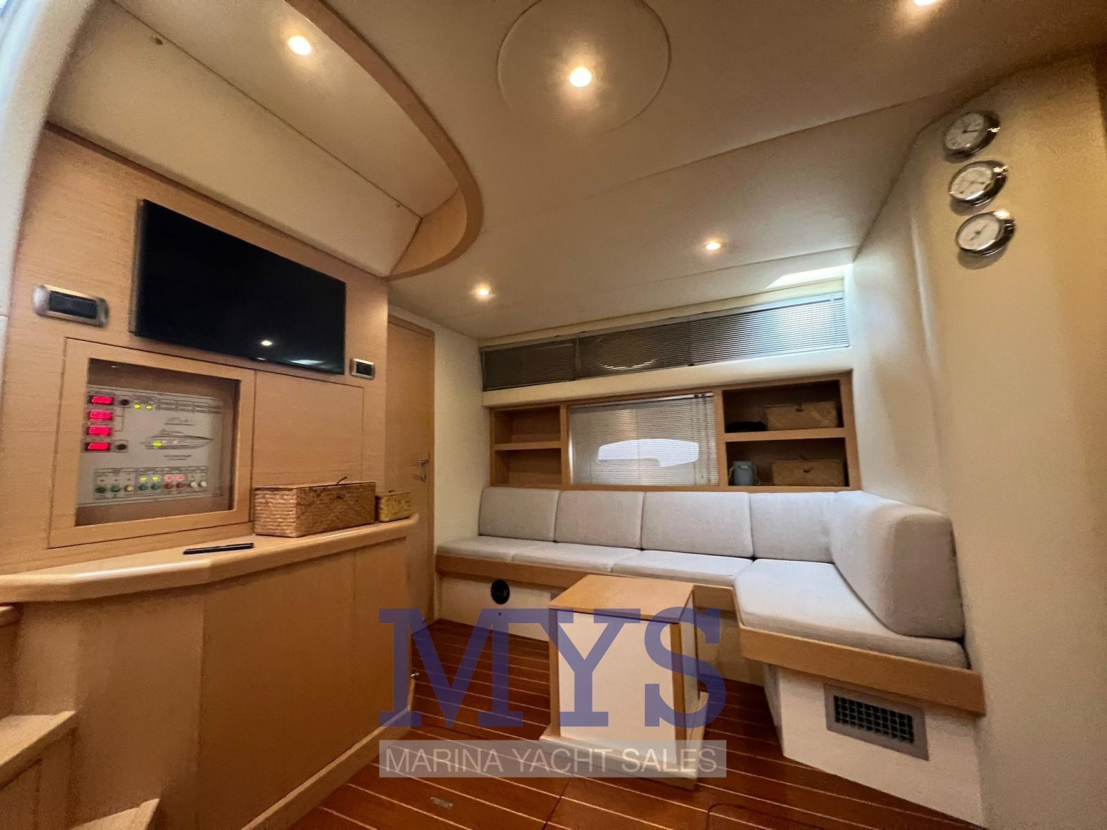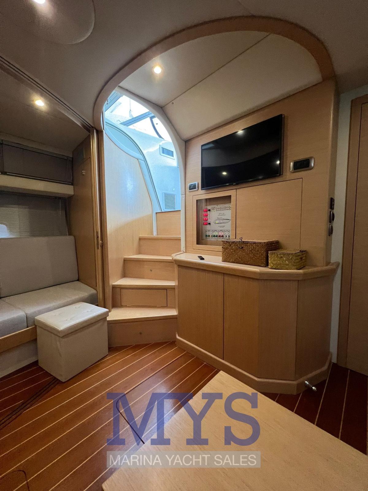Alarme gaz, Alarme moteur, Alarme de pompe de cale, Ancre (80 mt catena), Ouverture du compartiment moteur électrique, Eau sous pression, Radeau de sauvetage (2023), Batteries (Servizi 2023), Passavant en teck, 2 Douche de cockpit, Phare de poursuite, Flaps hydrauliques, Garage à annexe, Hard top, Extincteur(s) fixe(s), Indicateurs de flaps, Lavabo dans le cockpit, Éclairage de courtoisie, Spots sous-marins, Passerelle (a scompasa), Plateforme arrière (Teak), Pompe de cale automatique, Pompe de cale manuelle, Porte latérale (in acciaio inox), Prise de quai, Connexion eau sous pression à quai, Guindeau électrique, Echelle de bain, Annexe (Arimar), Corne.
