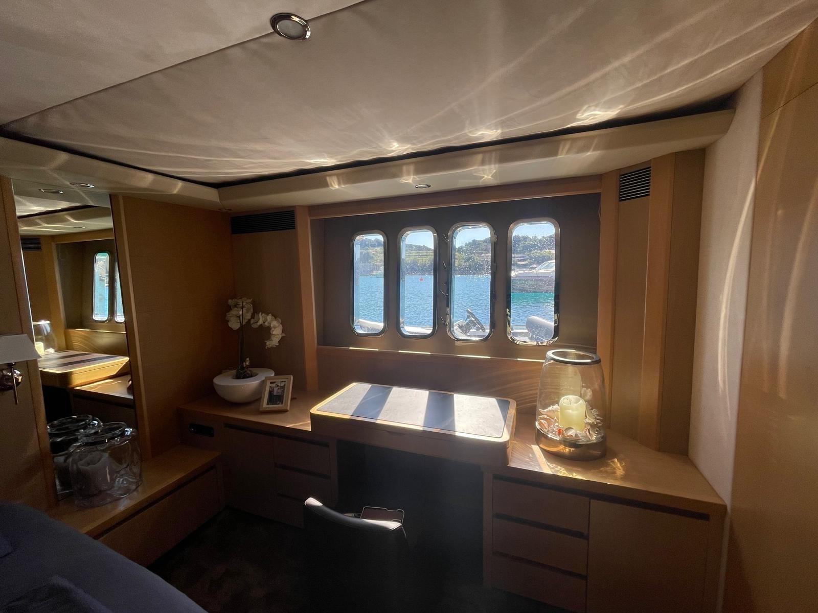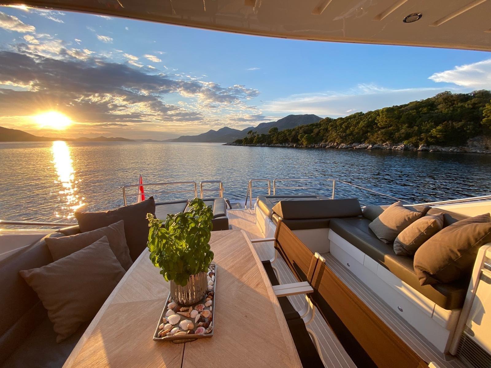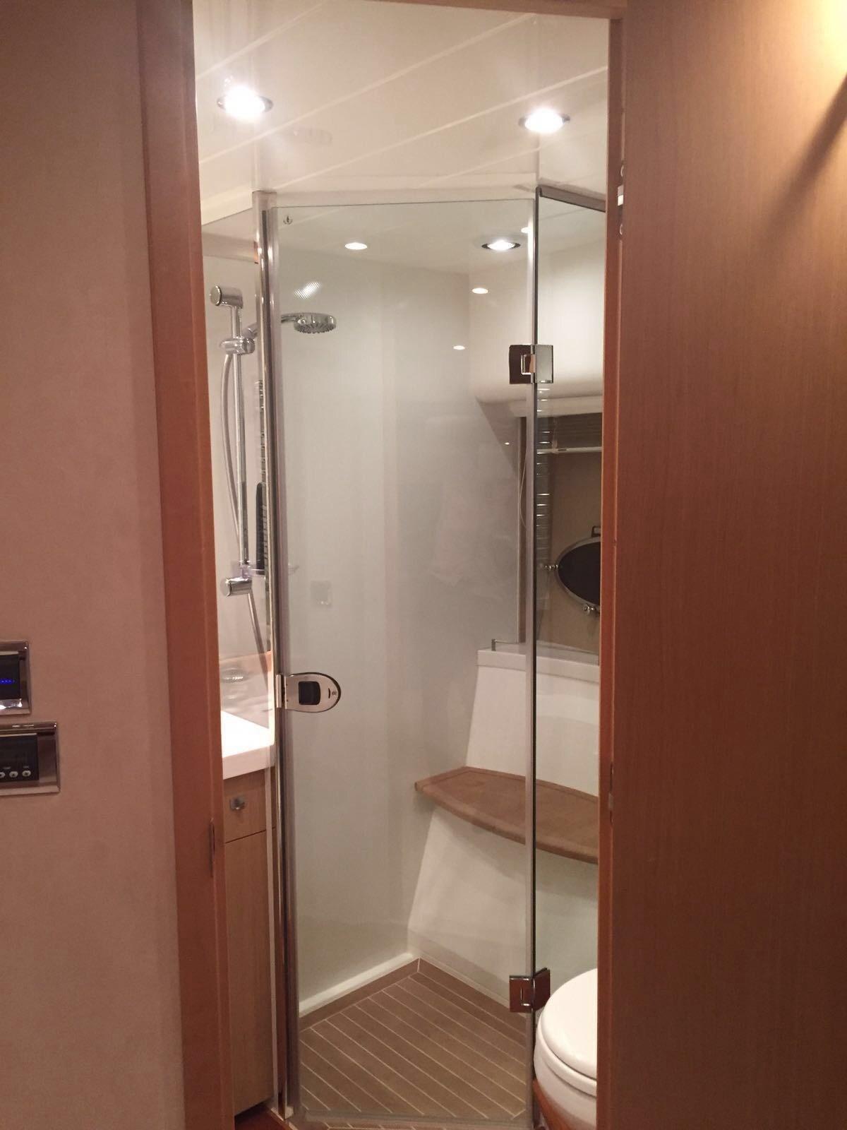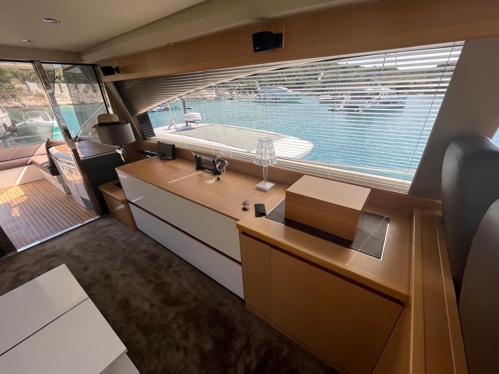 Douche de cockpit, Flaps électriques, Garage à annexe, Hard top, Extincteur(s) fixe(s), Lavabo dans le cockpit, Spots sous-marins, Passerelle, Plateforme arrière, Pont en teck, Porte latérale, Porte latérale, Cockpit en teck, Prise de quai, Guindeau électrique, Echelle de bain, table de cockpit, Corne, Winch électrique arrière, Winch électrique avant.