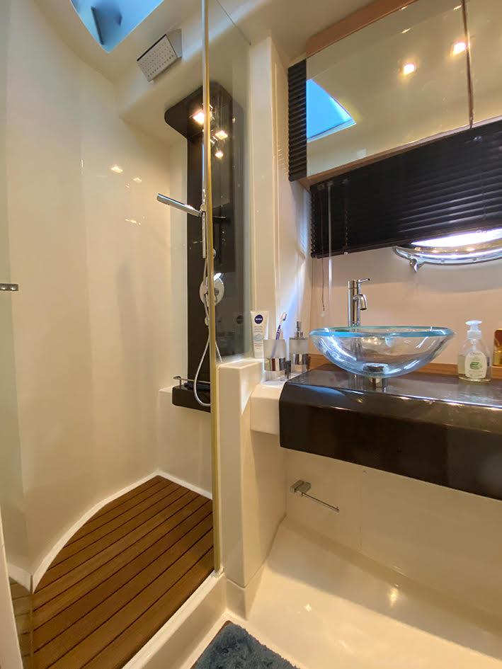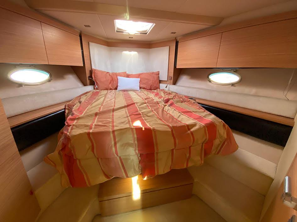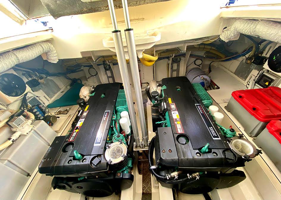 Motorisé par 2 x 435cv Volvo IPS 600 avec joystick de manœuvre et propulseur d’étrave, il offre une navigation fluide, silencieuse et une grande facilité d’accostage.