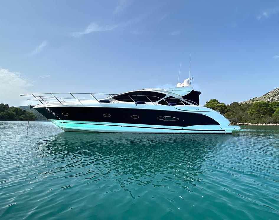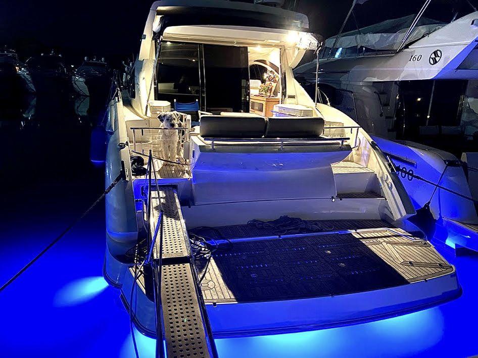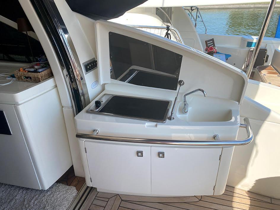 Un modèle emblématique alliant design sportif, confort luxueux et technologies de pointe. Ce modèle de 15,56 m séduit par son toit rigide électrique, son plan de pont spacieux, sa plateforme de bain hydraulique, et son ergonomie pensée pour la croisière haut de gamme.