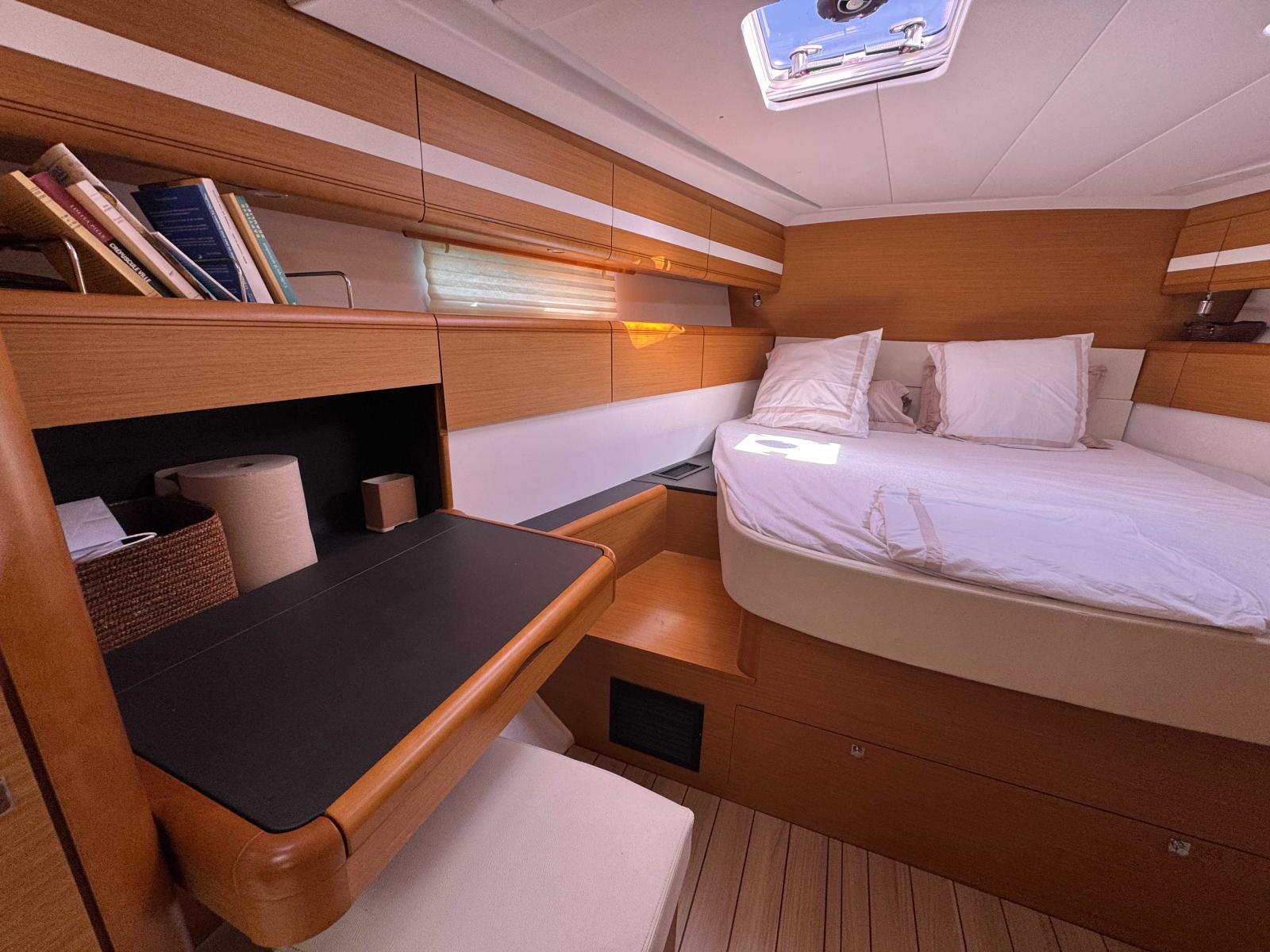 Parfaitement équipé , ce Jeanneau 53 dispose d’un dessalinisateur, de la climatisation, d’un groupe ONAN, de panneaux solaires, d’un armement hauturier complet et d’un propulseur d’étrave pour plus de sécurité et de confort.