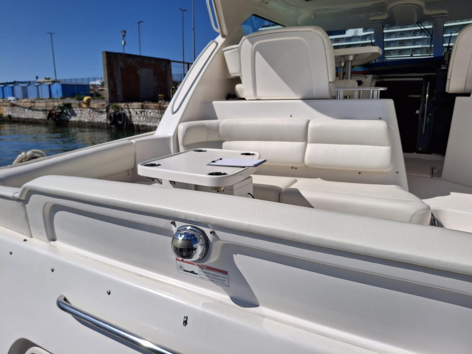 Alarme moteur, Eau sous pression, Douche de cockpit, Flaps hydrauliques, Extincteur(s) fixe(s), Plateforme arrière, 3 Pompe de cale électrique, Prise de quai, Guindeau électrique, table de cockpit.