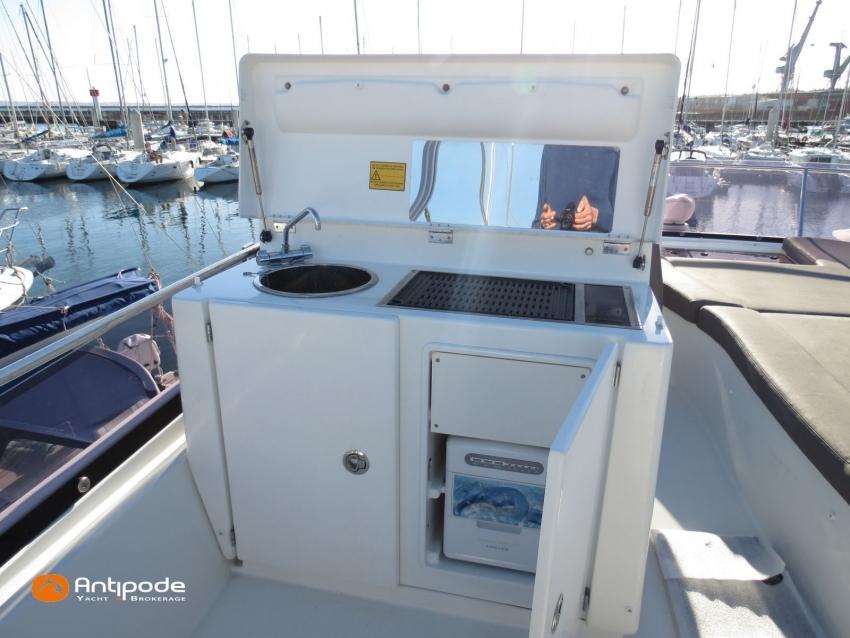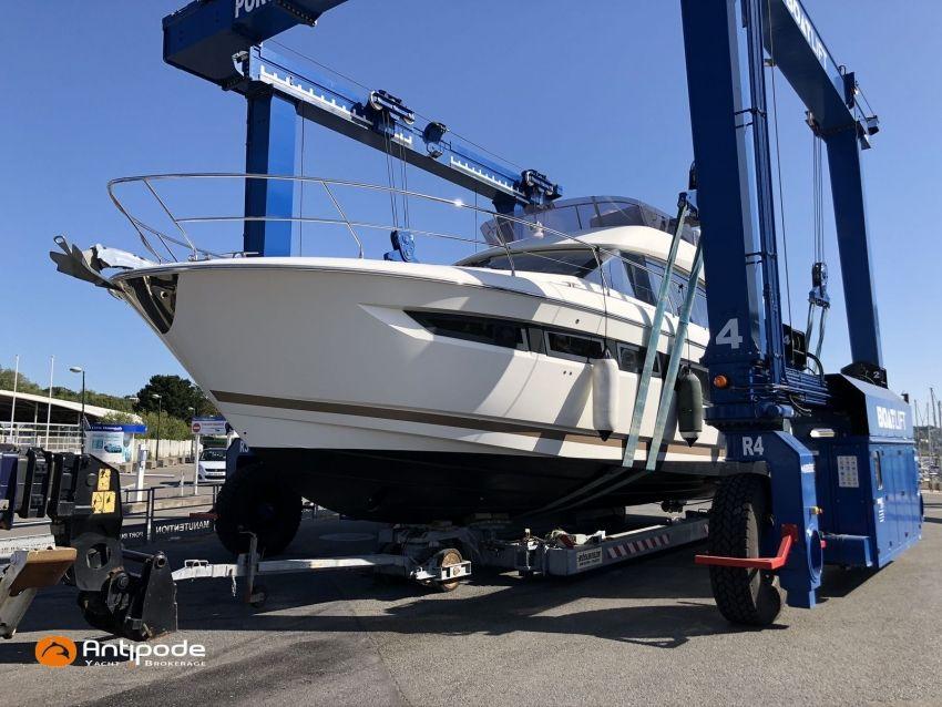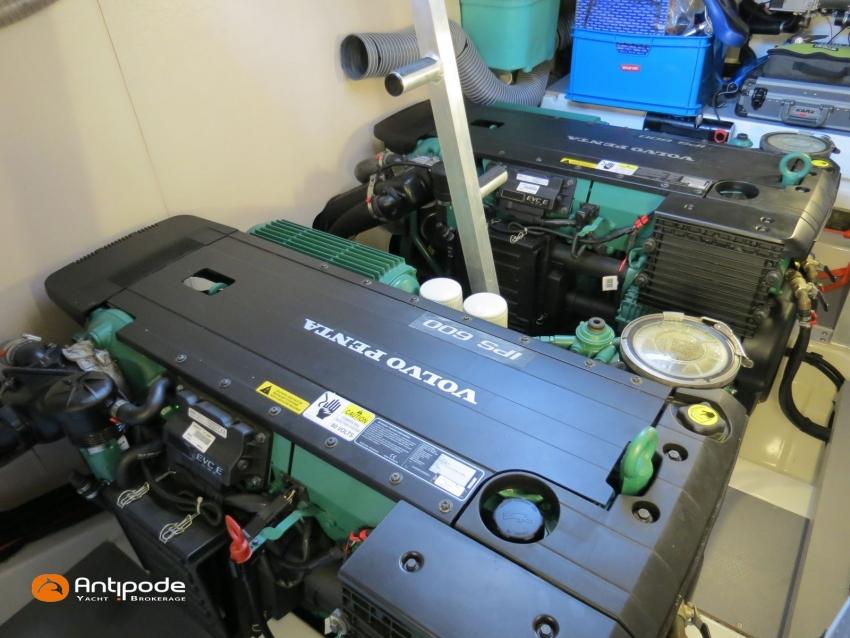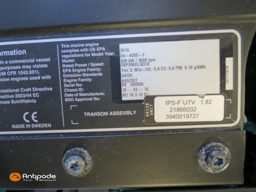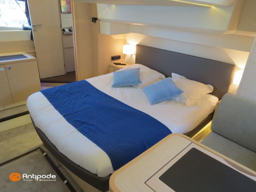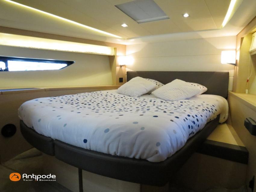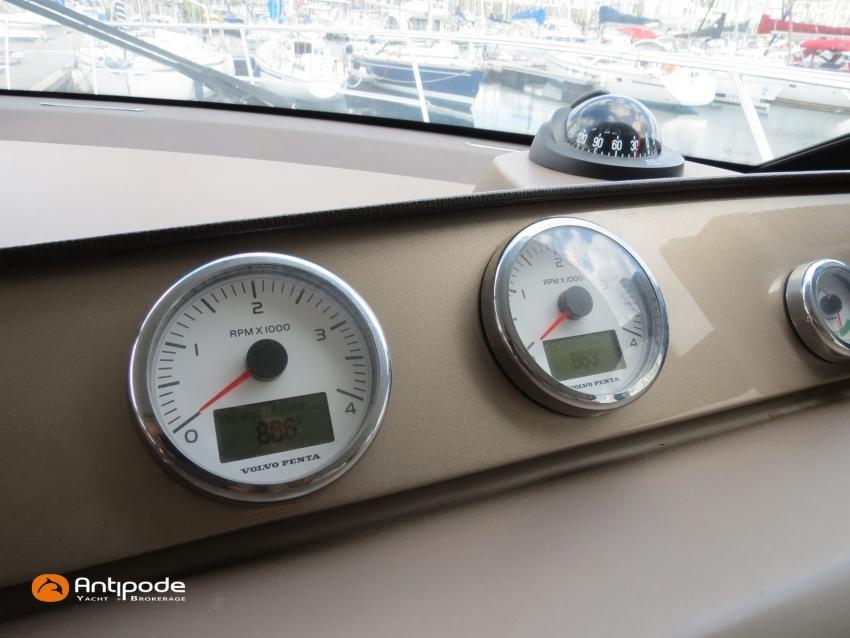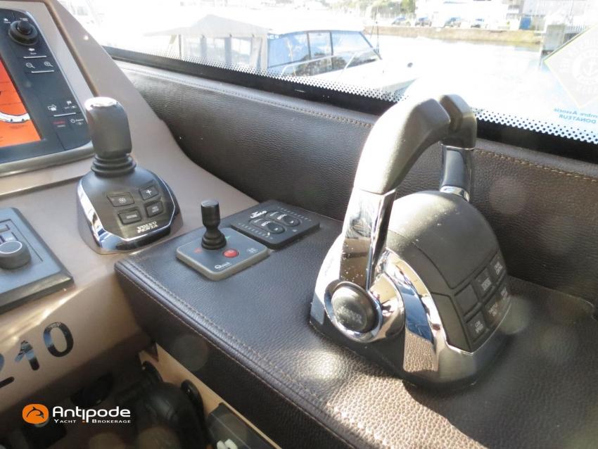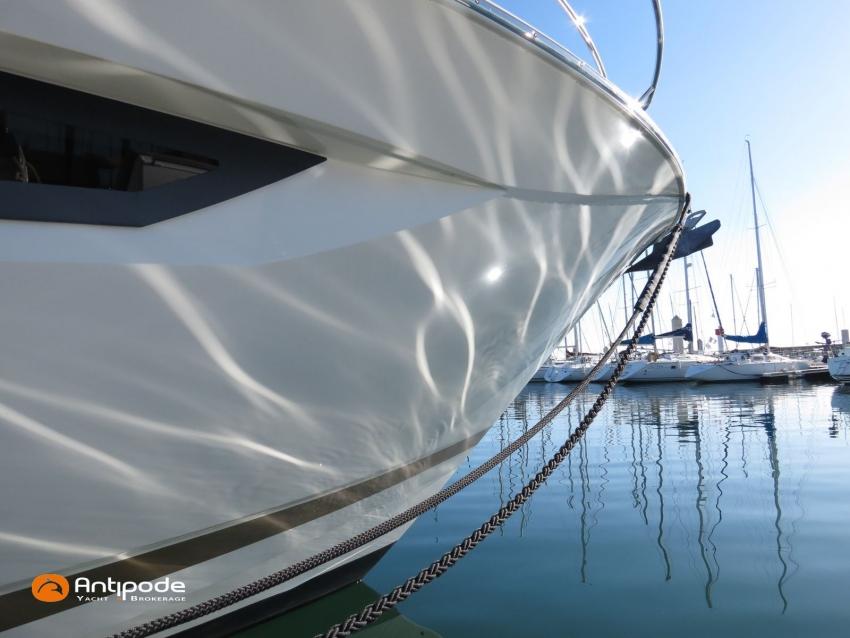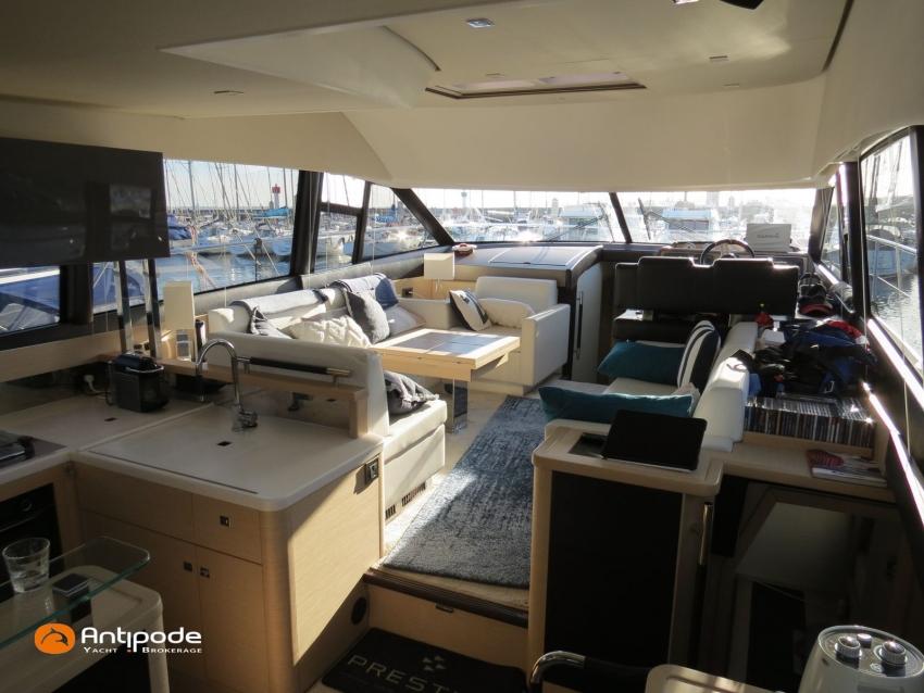 PRESTIGE 500 FLY, 2017, 2eme main, jamais loué, bateau de propriétaire, VOLVO IPS 600, 435 x2 cv (866 h), Propulseur d'étrave, Version d'aménagement intérieur 1 cabine avant, 2 cabines arrières, Cabine Marin, 2 cabinets de toilettes et douche, Menuiseries intérieures chêne clair, Selleries carré cuir, Table de carré électrique, Fond de cockpit latté teck, Table de cockpit en teck, Compteur de chaine au cockpit, Support d'annexe inox, Plateforme hydraulique, Flying bridge avec poste de pilotage, Bimini flying bridge, Tauds de fermeture arrière complète du cockpit - 2023, Pilote automatique in board Raymarine, 2x GPS / lecteur de carte au poste de pilotage - Raymarine, GPS / lecteur de carte au fly - Raymarine, Radar avec radôme sur support , Flaps Lenco, Lecteur FUSION dans chaque cabines, Gazinière 2 feux Gaz, Plancha au fly + cockpit, Four à micro-ondes 220 V + Grill, Eclairage sous-marin , Camera arrière - Raymarine, Cabestan electrique, Chauffage EBERSPACER, Générateur fixe 220 V - ONAN, Factures d'entretien disponible, Visible Bretagne. Pour plus d'informations ou pour fixer un rendez-vous de visite, contact : François Mouchel 06 62 30 97 30 - francois@antipode-yachts.com