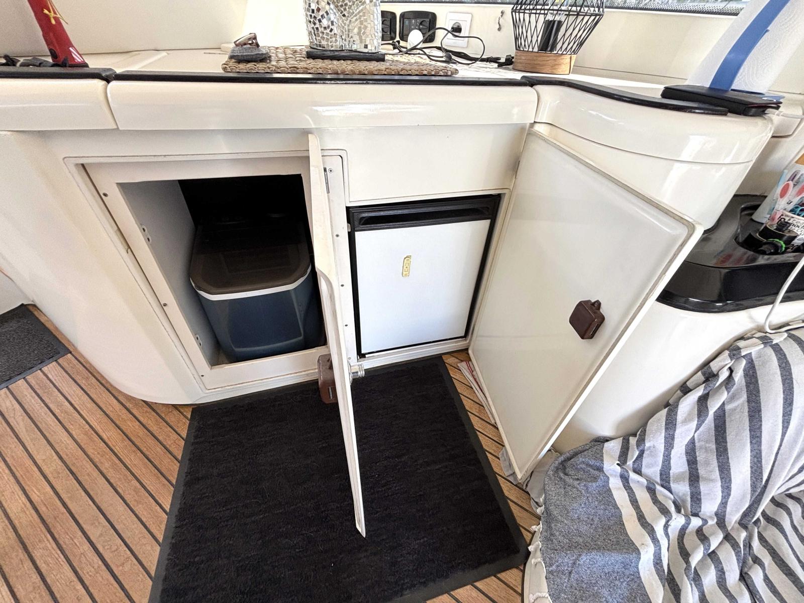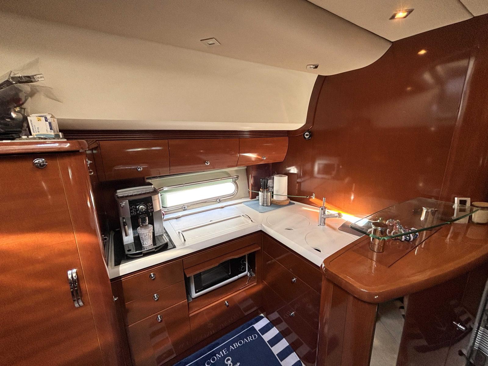 Ensuite sur tribord, coin cuisine avec plancha, réfirgérateur et évier.