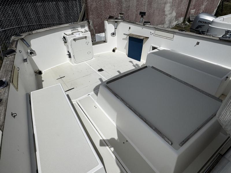 Équipé avec de nombreux accessoires de pêche et béquilles d'échouage et pour votre confort d'un réchaud + évier ,d'un frigo et de toilettes.