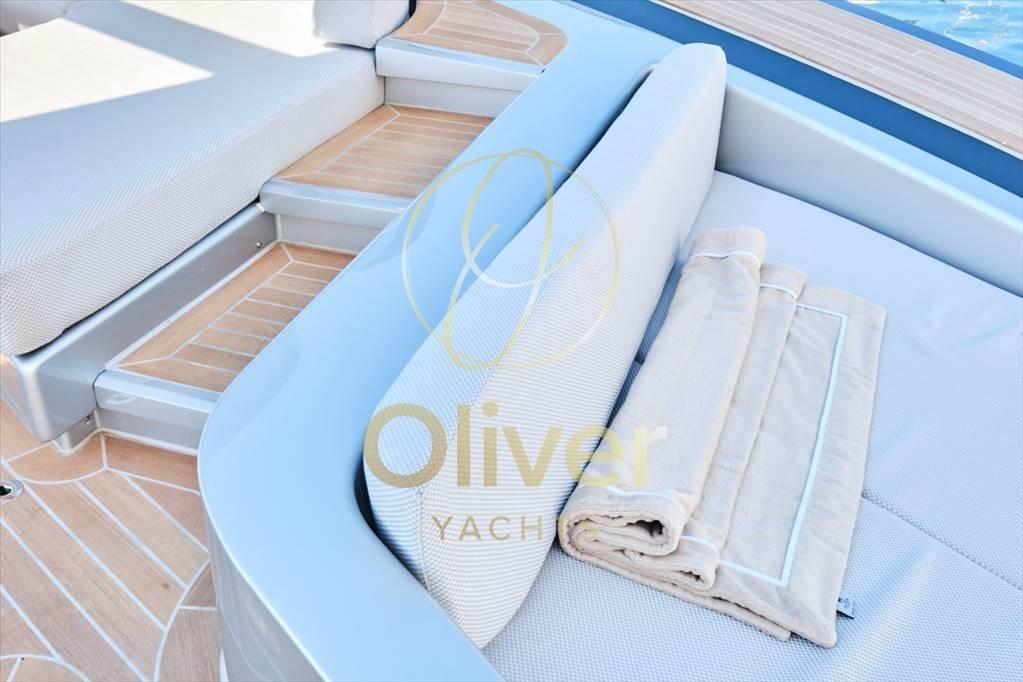 En conclusion, le Palmer Johnson PJ63 Sport est une œuvre d’art navale qui combine un design innovant, des performances exceptionnelles et le respect de l’environnement. Fabriqué en fibre de carbone, ce yacht open est synonyme de vitesse, de confort et de durabilité. Avec son spacieux salon ouvert et son intérieur luxueux, il offre un environnement confortable et raffiné pour profiter des journées en plein air avec les amis et la famille. Les intérieurs se caractérisent par des matériaux nobles, des finitions impeccables et une attention aux détails, créant une atmosphère d’élégance et de confort. Le poste de pilotage est équipé d’une instrumentation de pointe, dont un écran tactile Garmin GPSMAP 8416, qui vous donne un contrôle complet et sûr de votre navigation. De plus, le système de divertissement personnalisé de Domoarigato garantit une expérience de divertissement de haute qualité. L’armement du yacht comprend des réservoirs de carburant équilibrés, la climatisation, un générateur, des extincteurs et une ancre de taille appropriée. Dans l’ensemble, le PJ63 Sport représente un choix avant-gardiste pour ceux qui veulent un bateau vert, combinant innovation, performance et luxe dans un ensemble unique et fascinant.