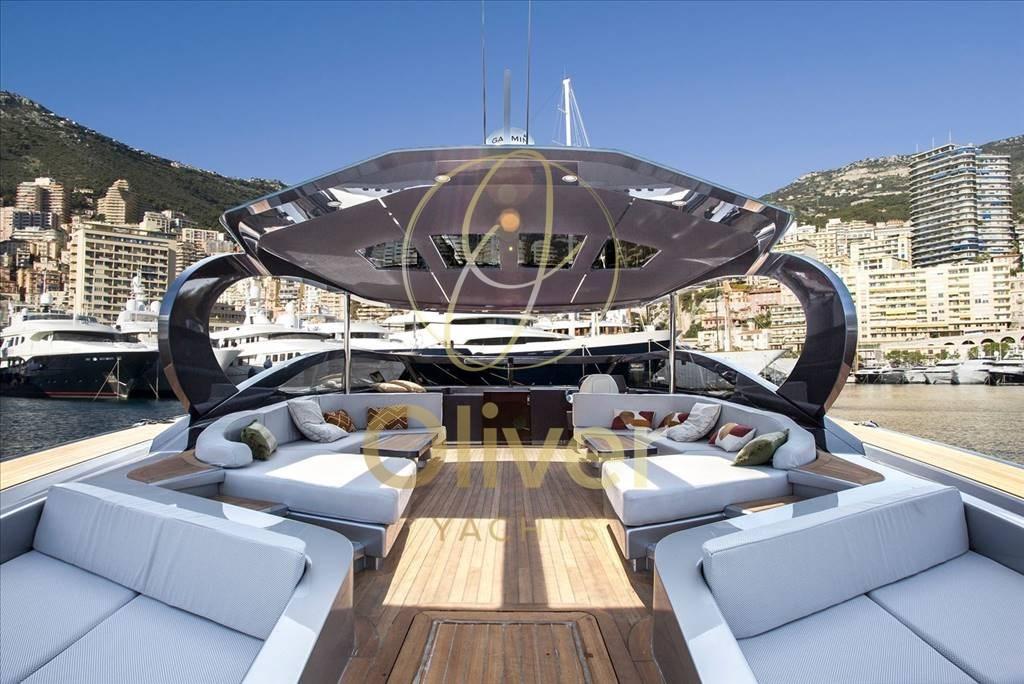 Le cockpit du PJ63 Sport dispose du plus grand salon de pont ouvert de sa catégorie, ce qui vous permet de profiter de belles journées en plein air avec autant d’amis que vous le souhaitez. Les deux salons de part et d’autre du salon, caractérisés par deux canapés trapézoïdaux symétriques, disposent de tables réglables en hauteur afin qu’elles puissent être utilisées comme espace apéritif/cocktail ou pour des déjeuners ou dîners entre amis. À l’arrière, il y a deux terrasses spacieuses et depuis la plate-forme de bain, grâce à la passerelle qui devient également une échelle de bain, vous pouvez monter de l’eau très facilement.