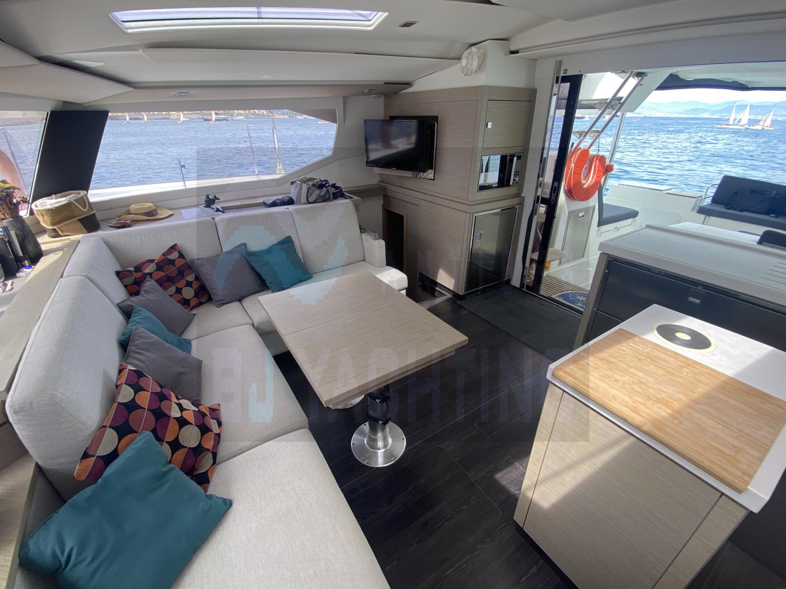 Cockpit spacieux, bain de soleil avant, lounge deck de 9 m²