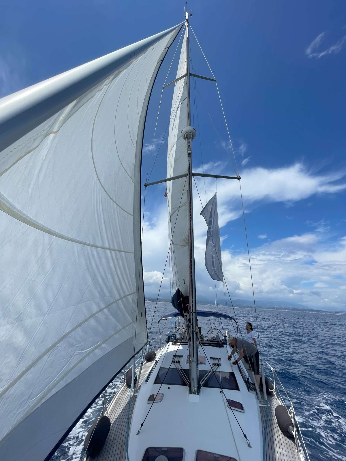 Équipé grand voyage, il embarque des voiles récentes, un électronique Raymarine dernière génération (2023) avec radar / AIS émetteur recepteur / girouette, BLu, Iridium Go... , générateur neuf (2023), dessal 2023 140l/h et armement hauturier complet.