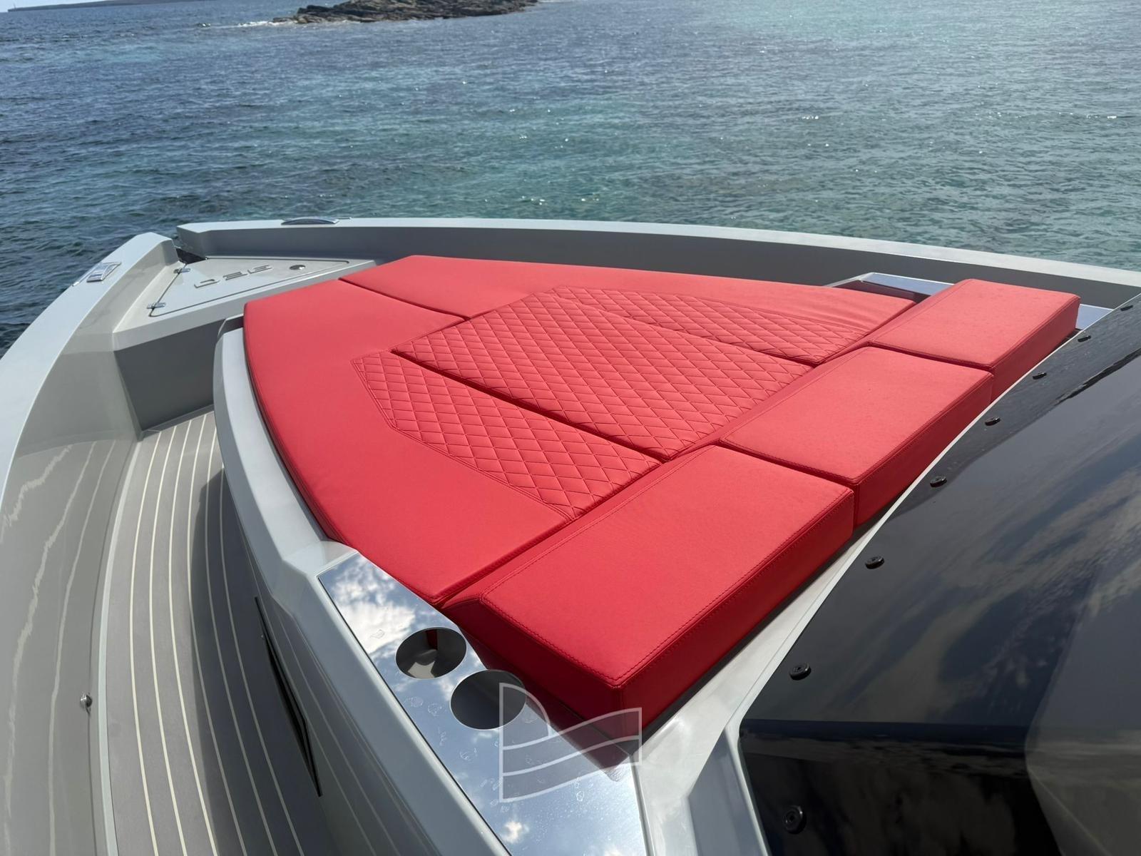 Passavant en teck, Couleur spéciale, Douche de cockpit, 2 Flaps électriques (Lenco), Plateforme arrière (di poppa maggiorata), Cockpit en teck, Prise de quai, Guindeau électrique, Echelle de bain, table de cockpit, Corne, T-Top.