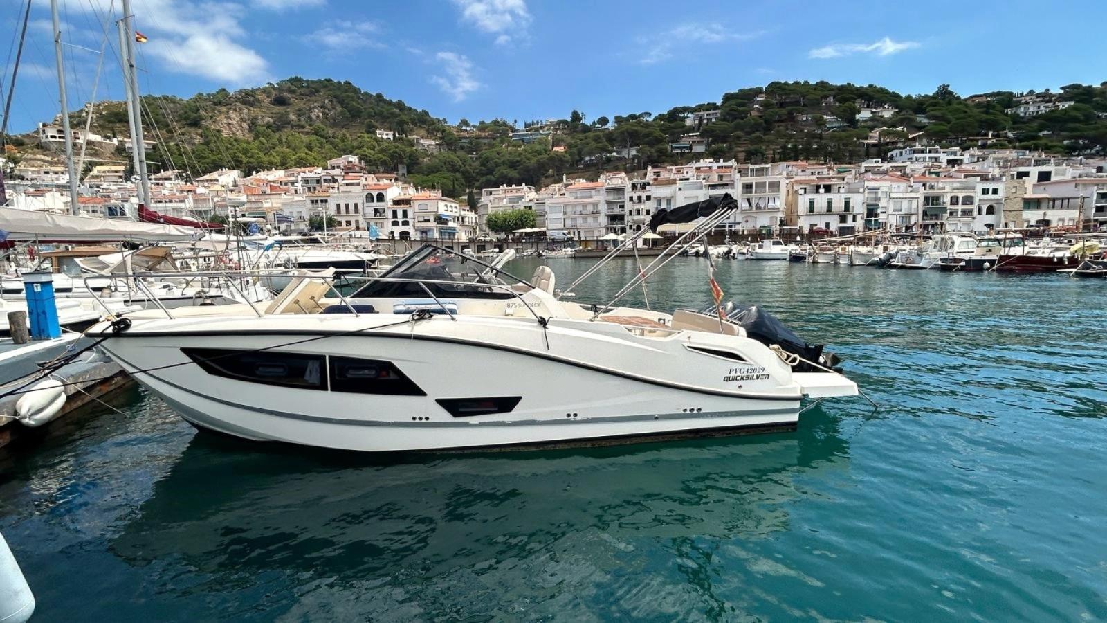 Quicksilver 875 Sundeck, 2x225cv Mercury V6 mis à l'eau 2022, seulement 57h. Électronique Simrad tactile, GPS, traceur, sondeur, bimini, bains de soleils convertibles, cuisine extérieure, audio Fusion... REPRISE, FINANCEMENT ET PLACE DE PORT POSSIBLES. Contact Mike: 06.11.18.51.01.