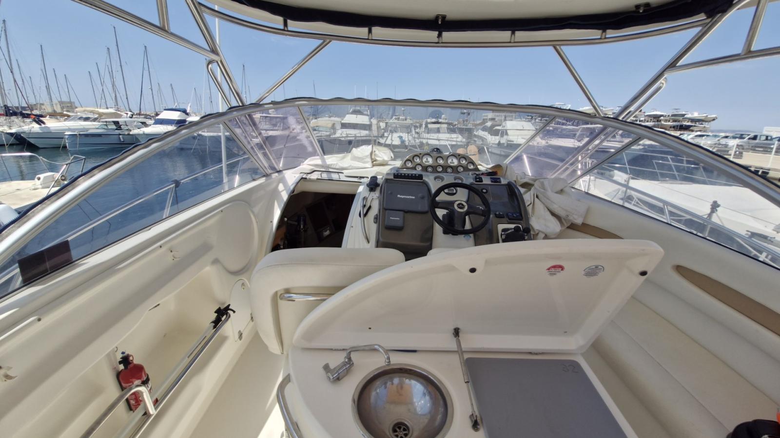 CRANCHI ZAFFIRO 32 avec Volvo D4 2*225cv. T-TOP avec taud de fermeture complet, panneau solaire, CLIMATISATION, propulseur d'étrave, GPS, sondeur...REPRISE, FINANCEMENT ET PLACE DE PORT POSSIBLES. Contact : Frédéric : 06.13.19.41.59