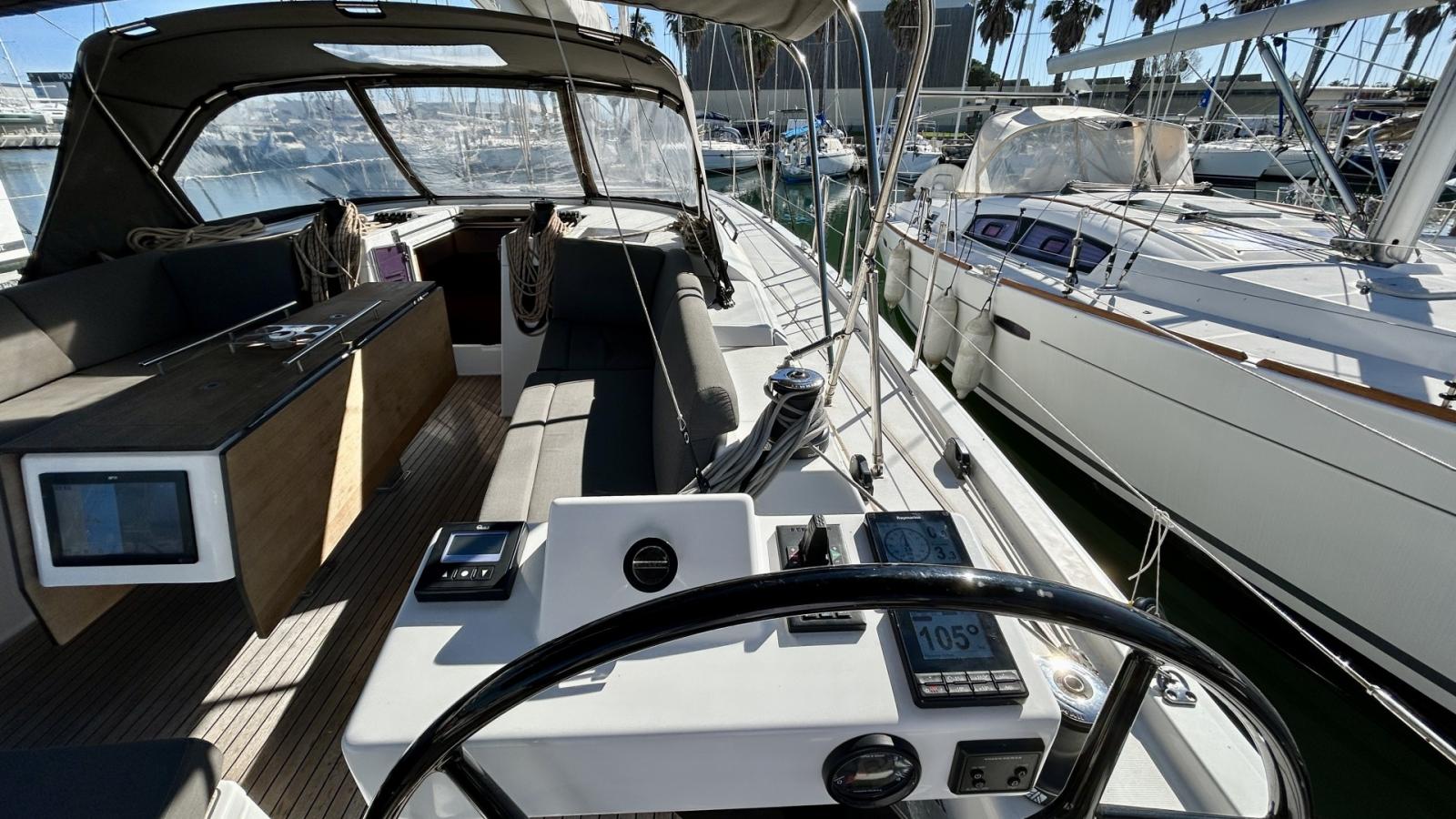 DUFOUR 470, GV Full batten en dacron, génois sur enrouleur, gennaker sur emmagasineur. Volvo 75 cv. électronique full RAYMARINE. Dessalinisateur, clim réversible, propulseur d'étrave... REPRISE, FINANCEMENT ET PLACE DE PORT POSSIBLES. Contact : Alexandre 06 27 75 20 79