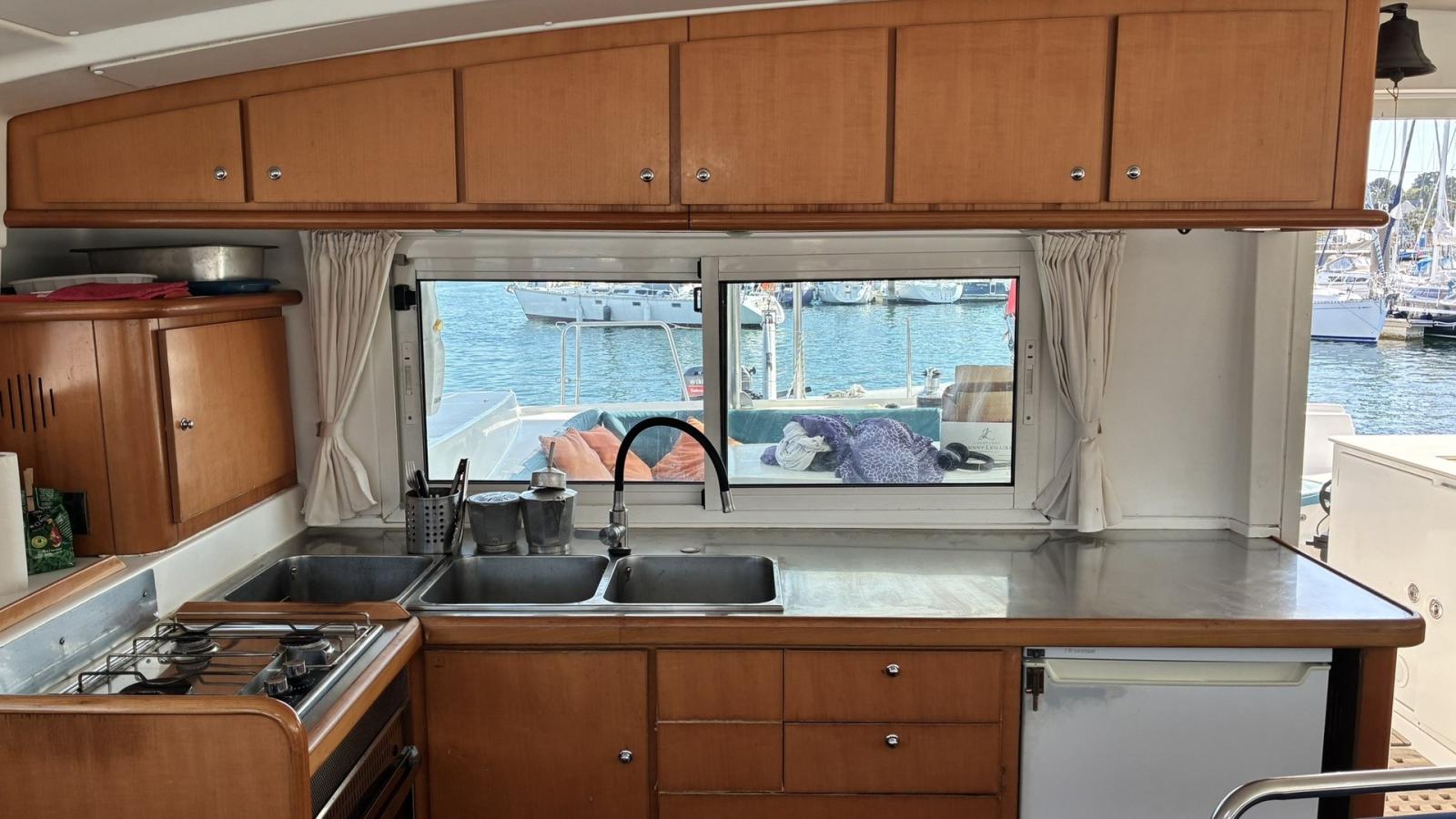 Le Lagoon 440 est un catamaran emblématique, reconnu pour son confort, sa robustesse et ses performances en navigation hauturière. Ce modèle offre un grand cockpit arrière protégé, un poste de barre en flybridge offrant une vue panoramique exceptionnelle, ainsi qu’un espace intérieur lumineux et spacieux, idéal pour la vie à bord ou les longues croisières.