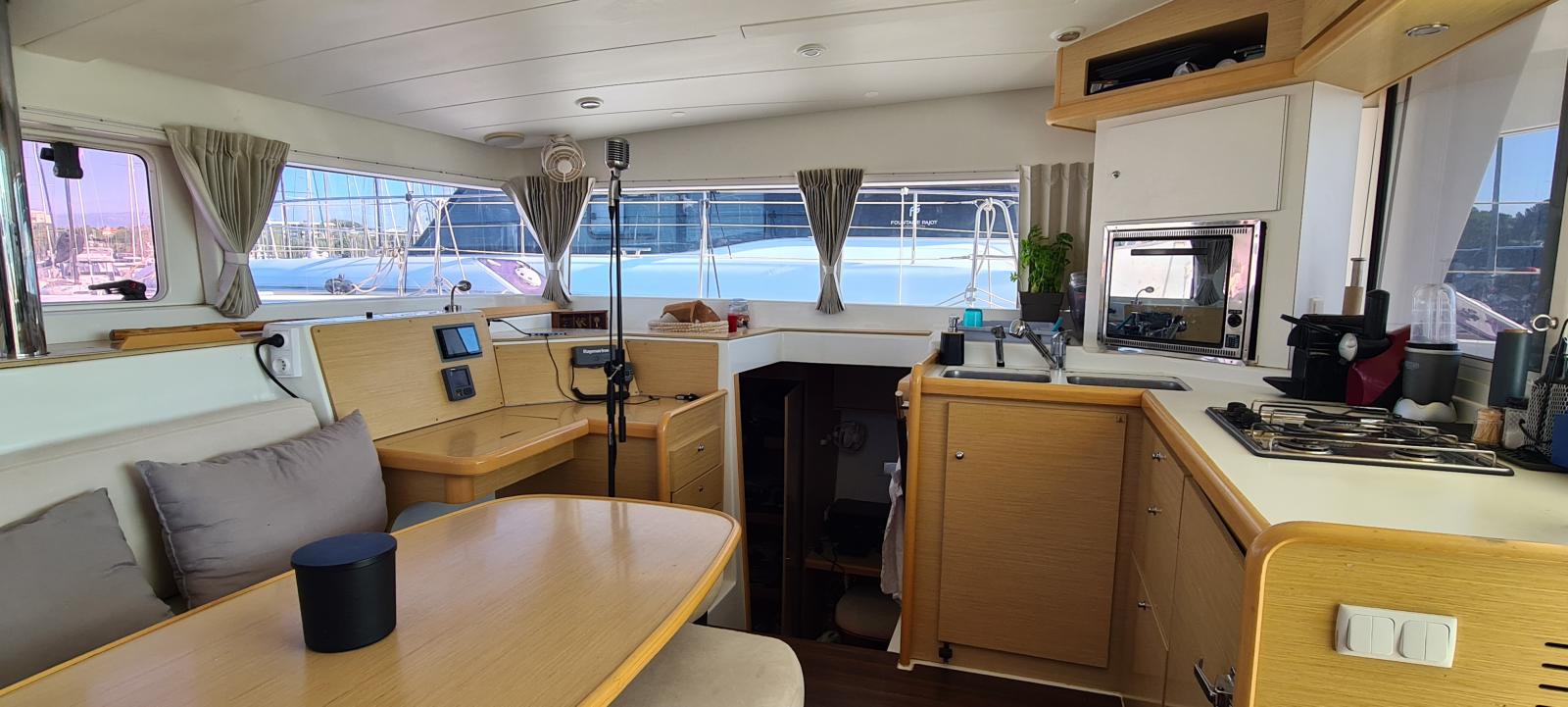 Ce Lagoon 400 est disponible à la visite, est idéal pour des moments de détente en mer en famille ou entre amis.